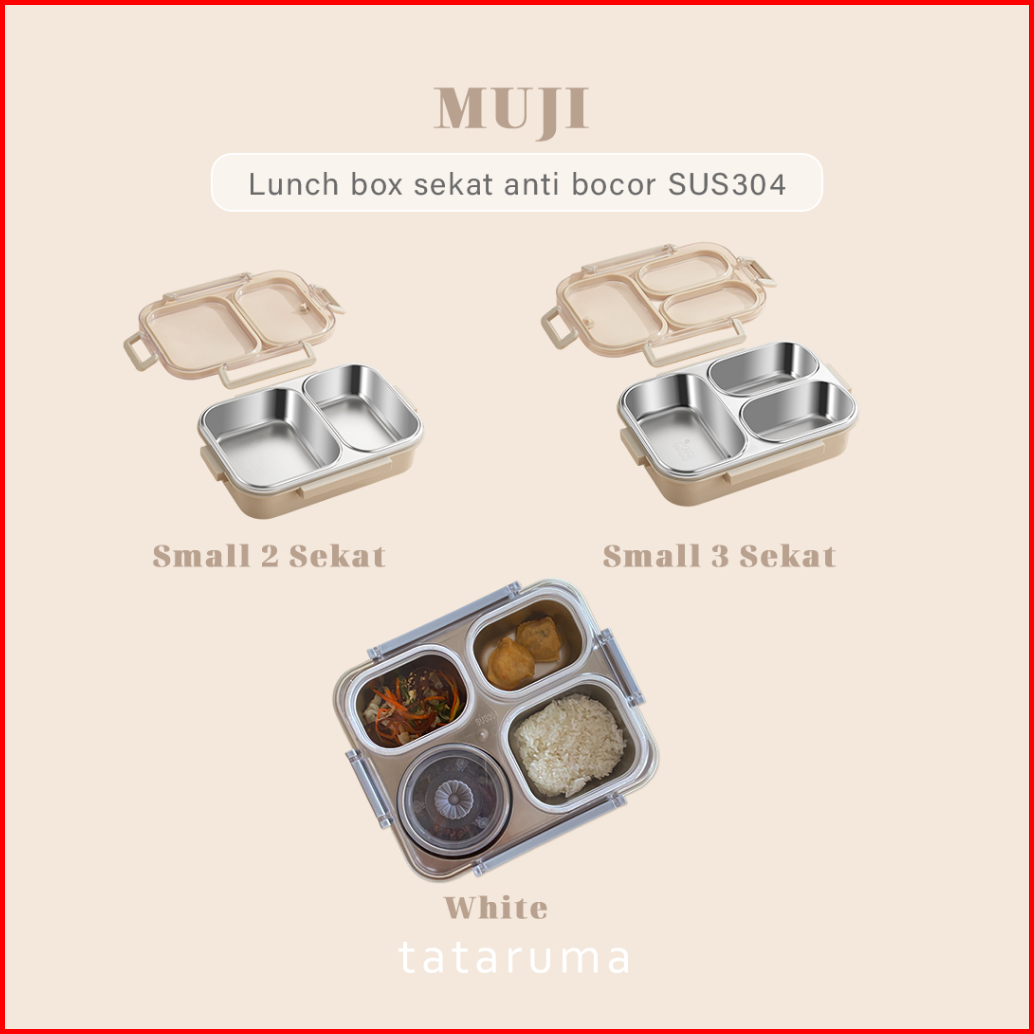 Tataruma Muji - Lunch Box Stainless 304 4 Sekat Kotak Bekal Anti Bocor Tumpah Dengan Mangkuk