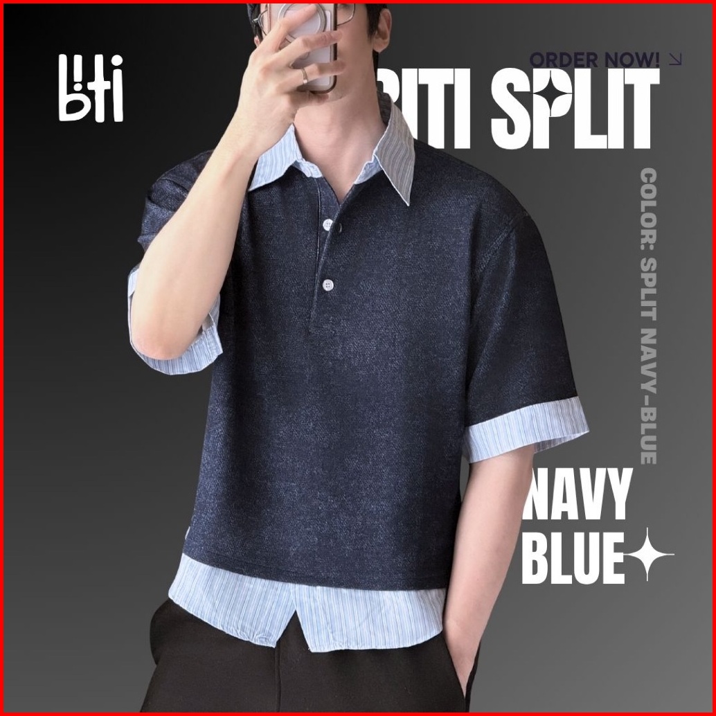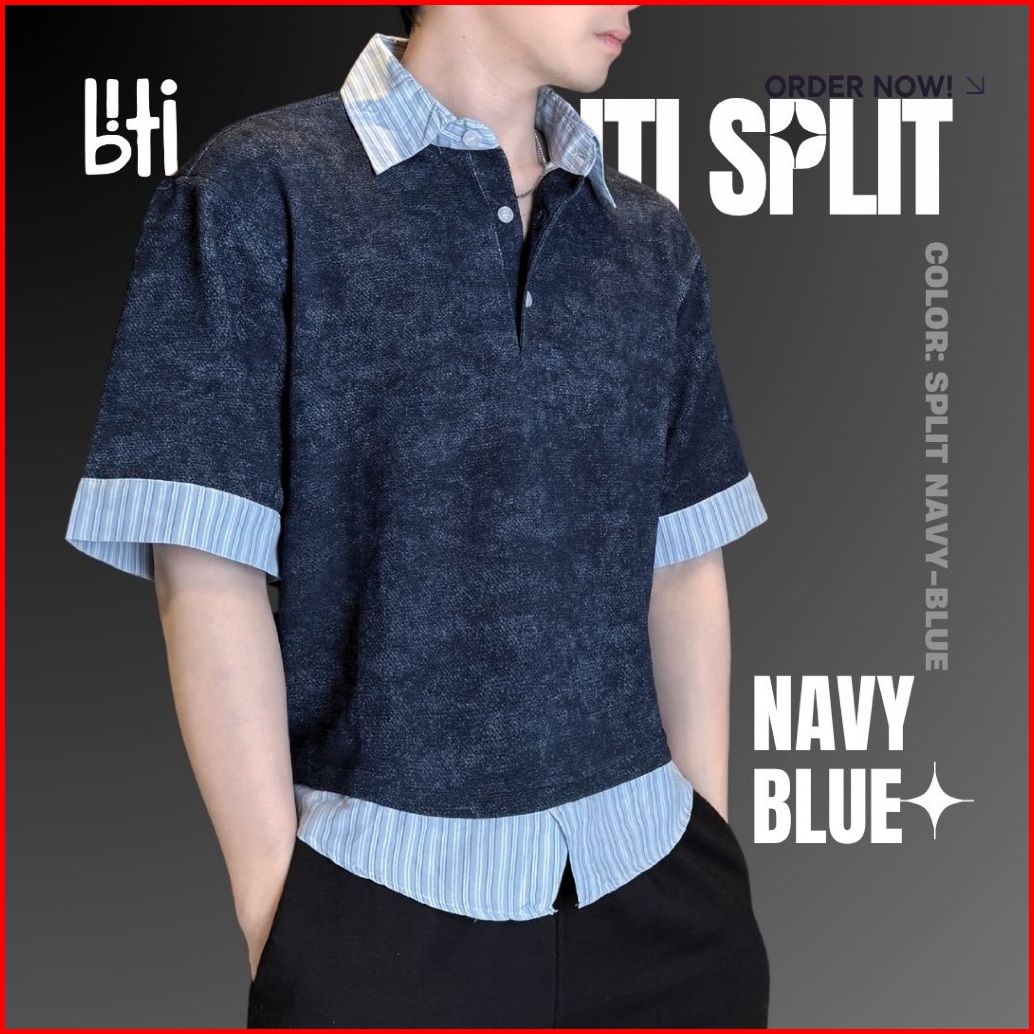 Biti Split Boxy Knit Shirt Kemeja Lengan Pendek Rajut Pria Kombinasi