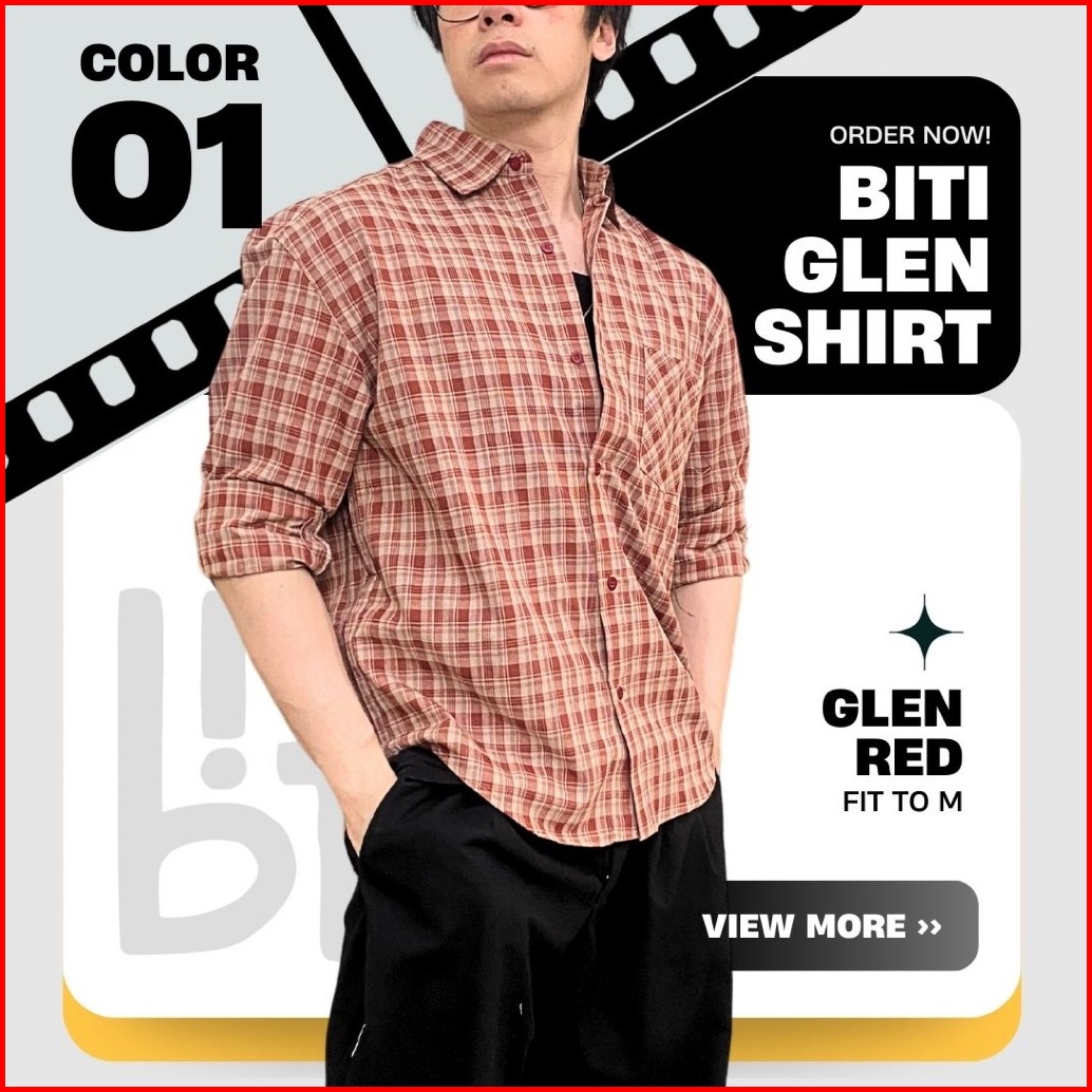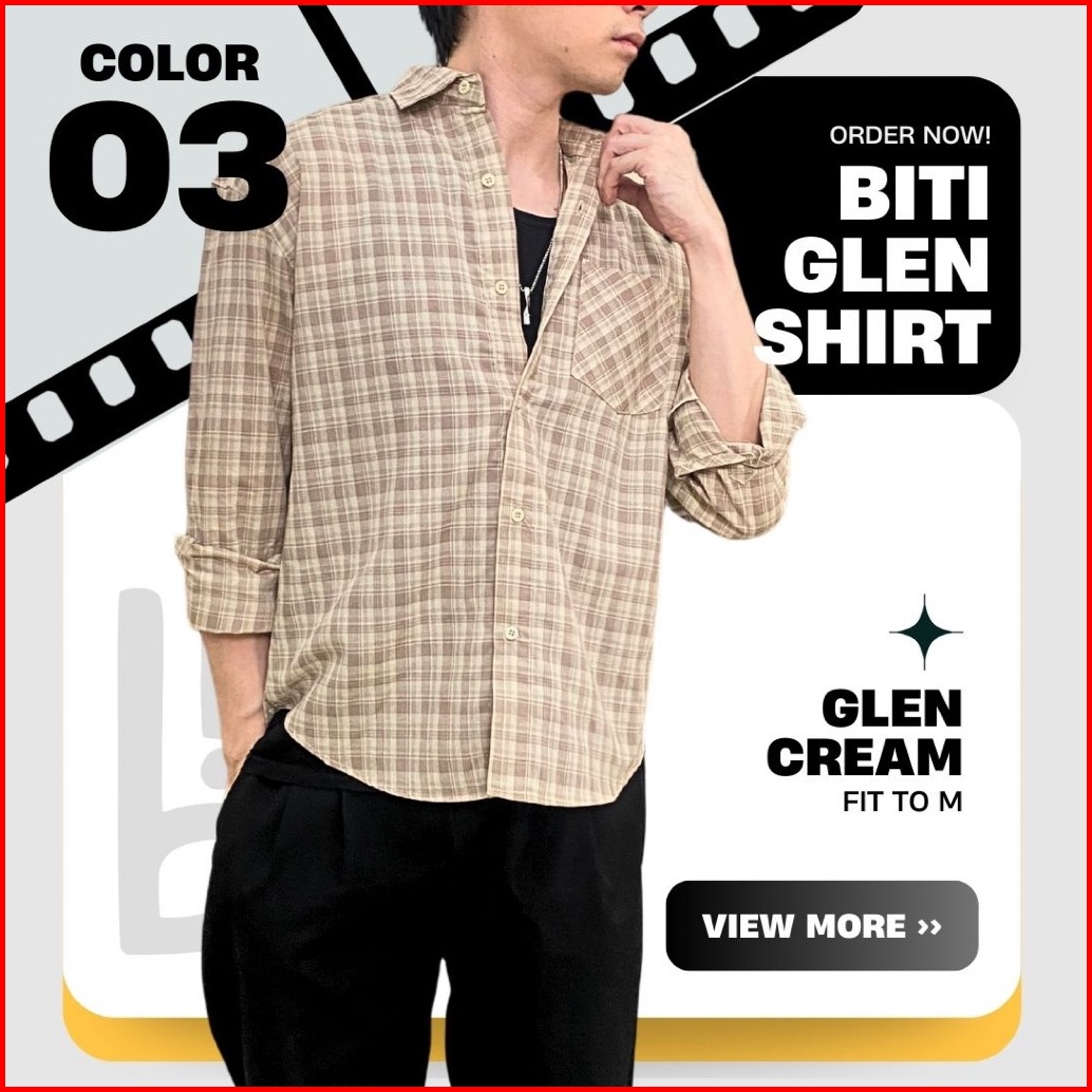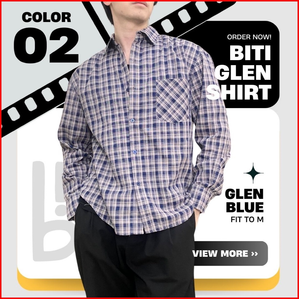 Biti Glen Shirt Kemeja Lengan Panjang Pria Flannel Katun Kotak-kotak Gingham Biru Merah Abu Cream