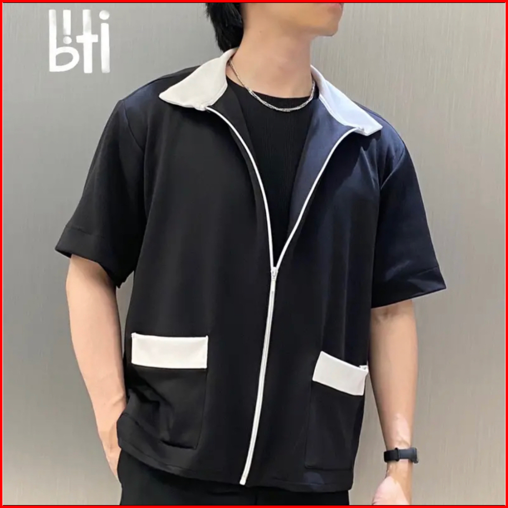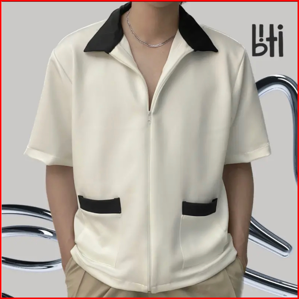 Biti Zip Korean Timeless Jacket Semi Kemeja Scuba Hitam Putih Oversize