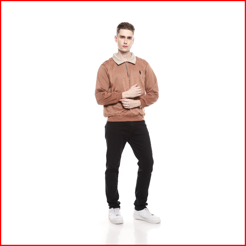 Sweater Crewneck Half Zipper Rugby Kerah Kombinasi Logo Bordir Premium Fleece High Quality Couple Pria Wanita Casual Len