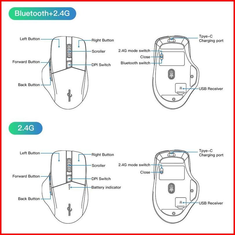 Goojodoq Wireless Mouse 4000dpi Usb Computer 2.4ghz Mouse Ergonomic Scrolling Battery Display Bluetooth Mouse