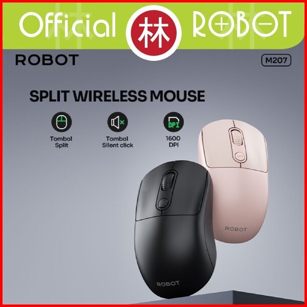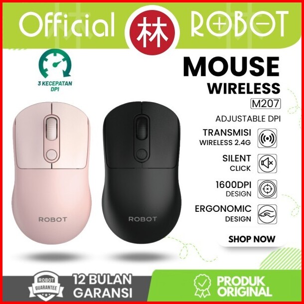 Robot M207 Wireless Mouse 2.4 Ghz Optical 1600 Dpi Silent Akurat Gaming Pc Laptop New M206