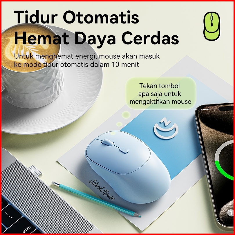 Olyps Mouse Wireless Bluetooth Silent Click Mini Rechargeable Laptop Tanpa Kabel Optical 1600dpi