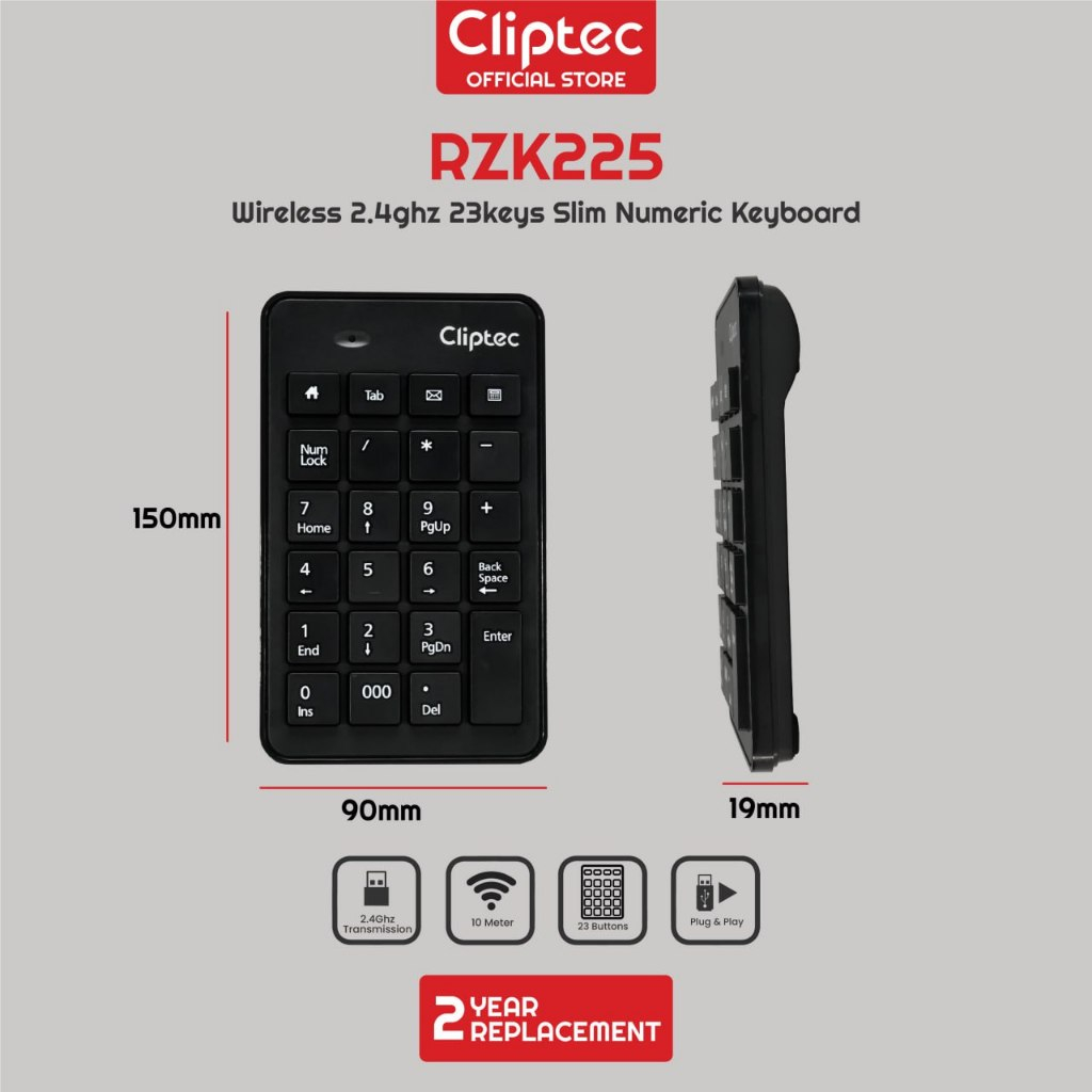 Numeric Keyboard Wireless 2.4Ghz Cliptec RZK225 Slim