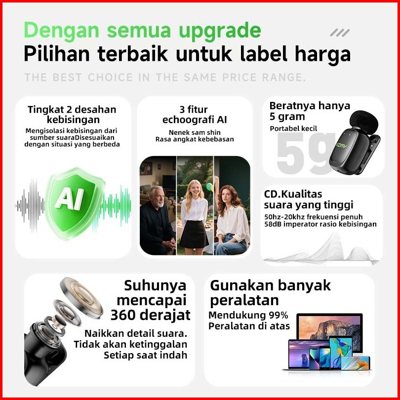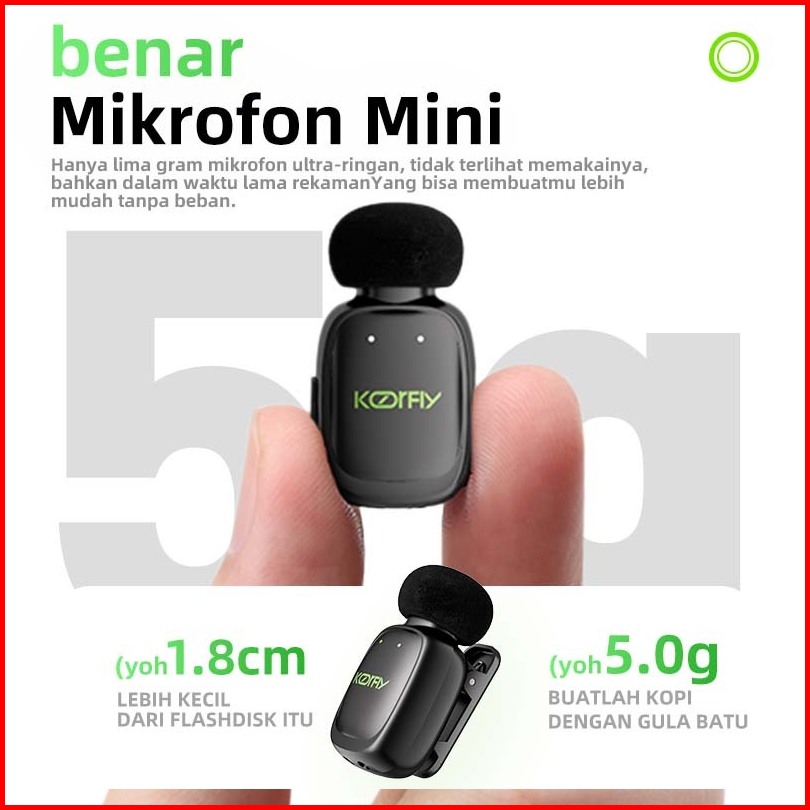 5 G Mikrofon-koorfly Mini Wireless Microphone Fitur Ai Pengubah Suara Reverb Cerdas Pengurangan Kebisingan Berat 5 Gram