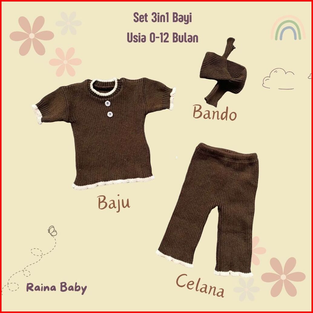 Set 3in1 Newborn Baby Girl 0-12 Bulan Setelan Rajut Pendek Bayi Baru Lahir Atasan Celana Lucu Max Bb 4kg Kado Lahiran Se