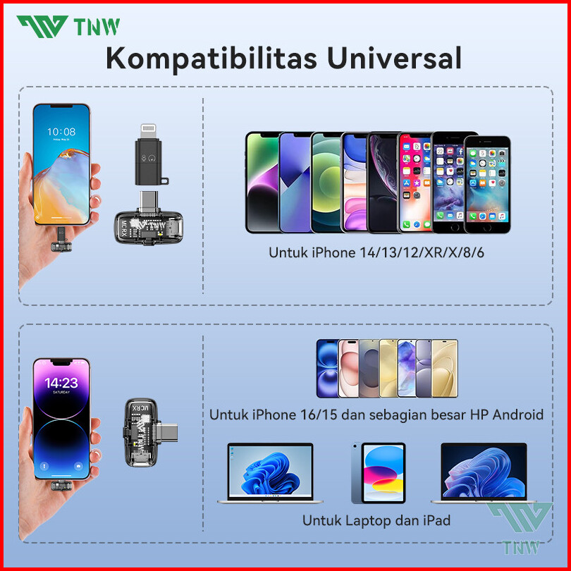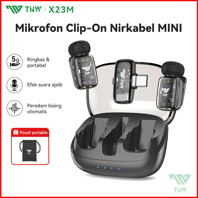 Tnw X23m Wireless Microphone Ultra-mini Mic Mikrofon Nirkabel Lavalier Microphone Dengan Ai Voice Changer Untuk Video Re