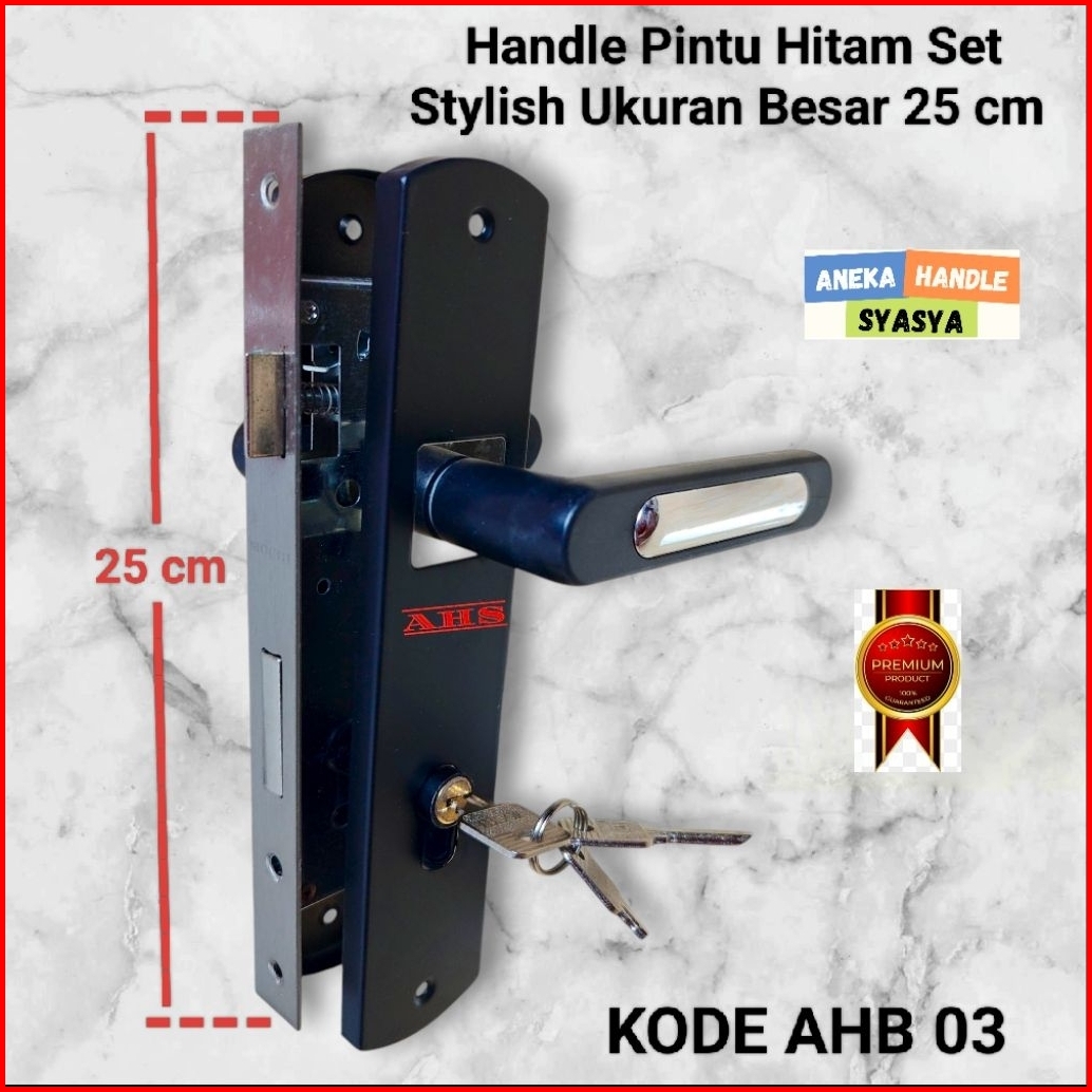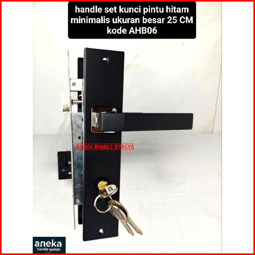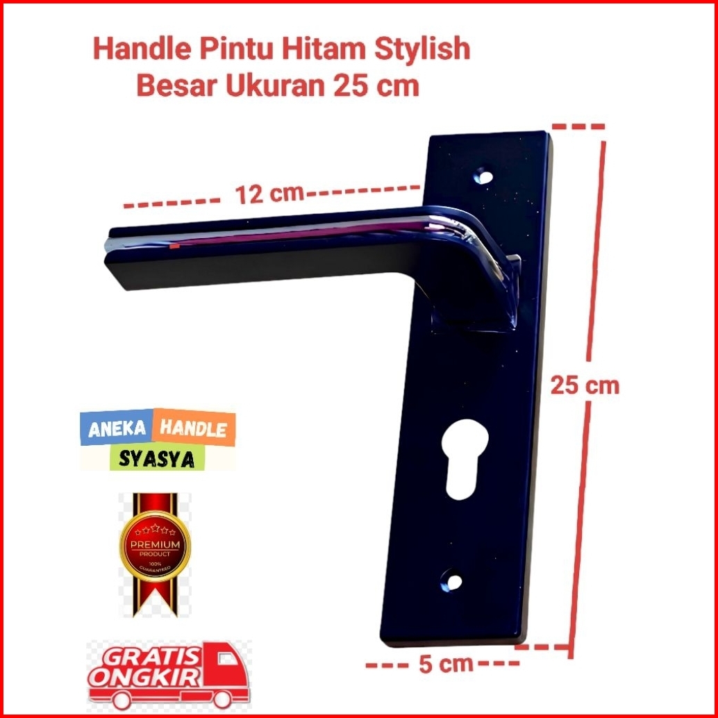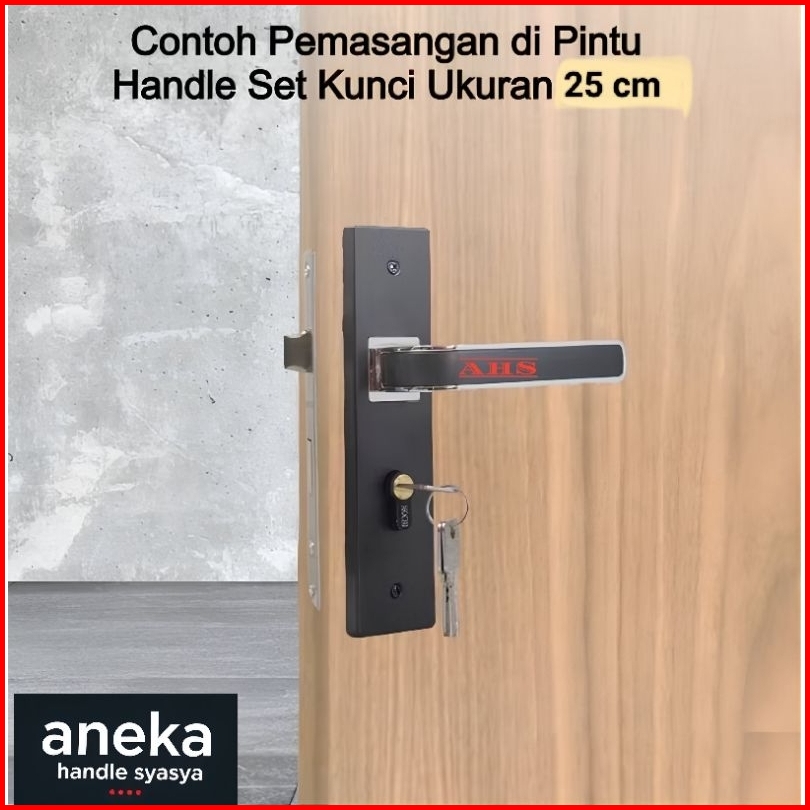 Handle Set Kunci Pintu Ukuran Besar 25cm Hitam Ring Silver Minimalis Gagang Handle Kamar Utama