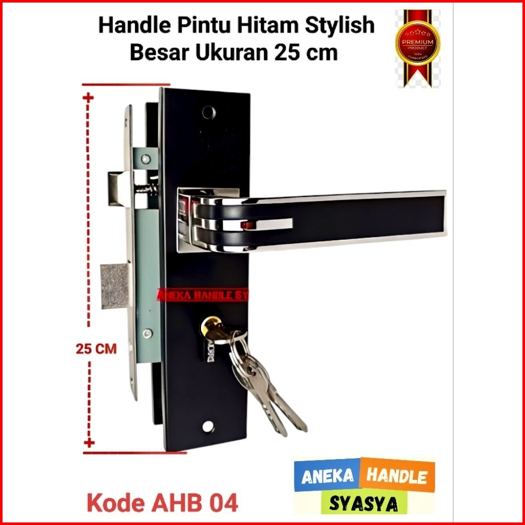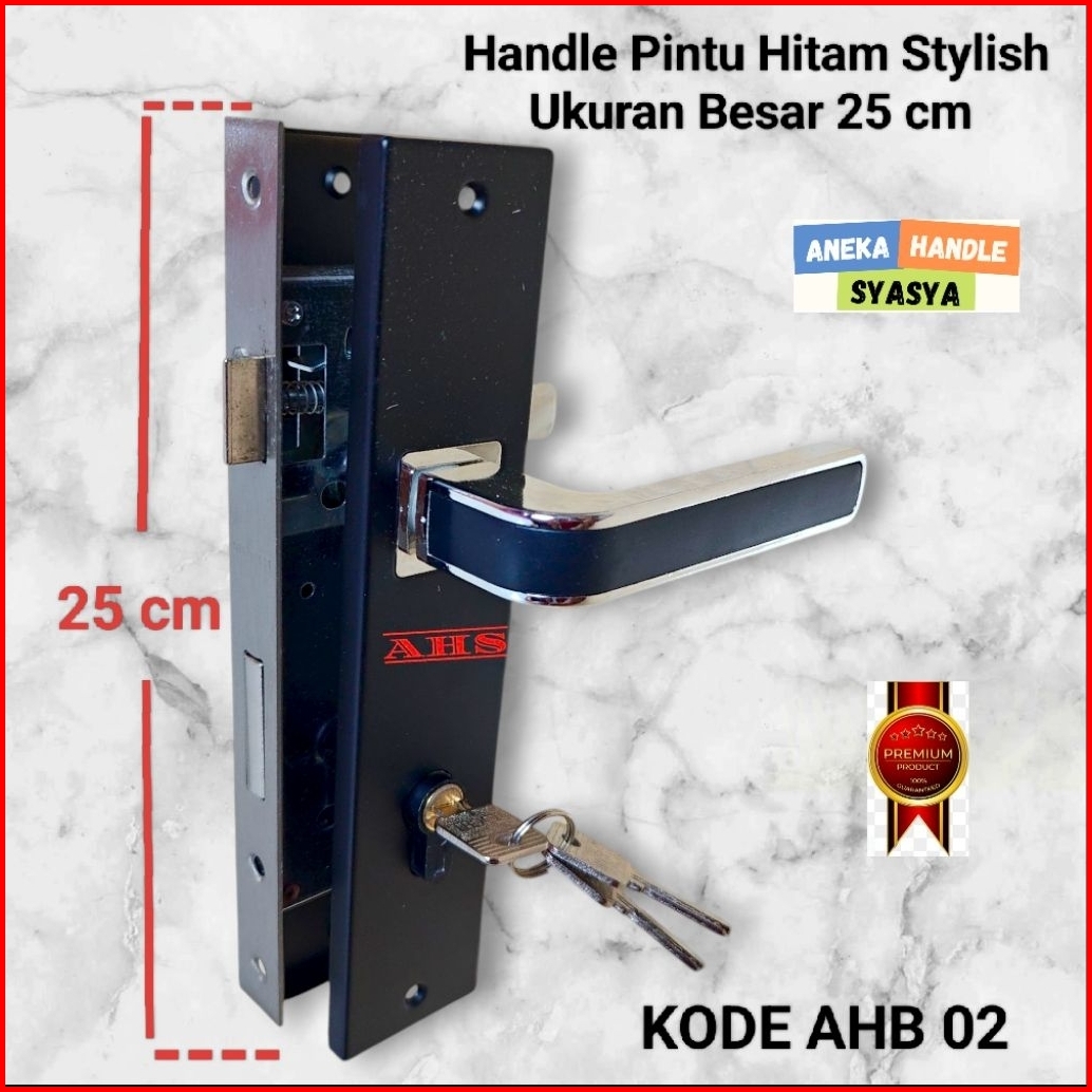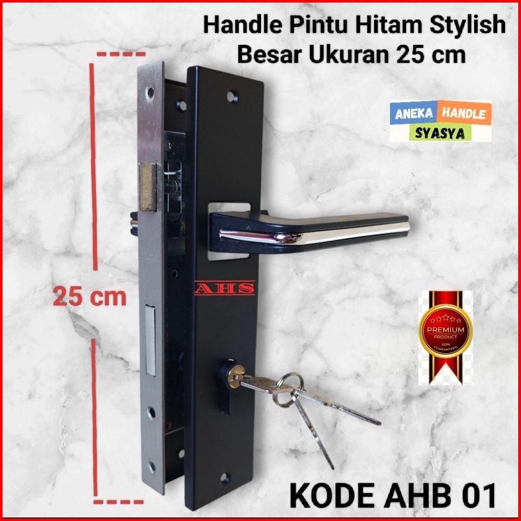 Handle Set Kunci Pintu Ukuran Besar 25cm Hitam Ring Silver Minimalis Gagang Handle Kamar Utama