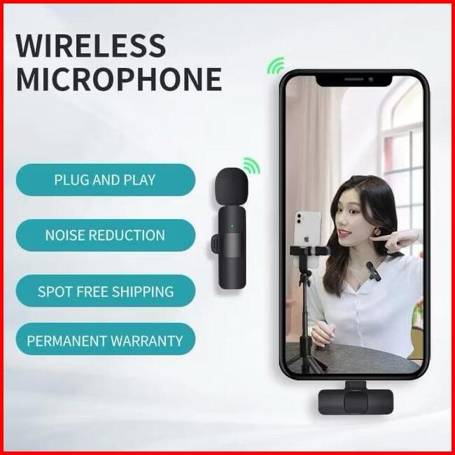 Mic Wireless K8 Type C Clip On 1 Mic Rechargeable Mikrofon Nirkabel Praktis Kualitas Suara Jernih Handphone Microphone M