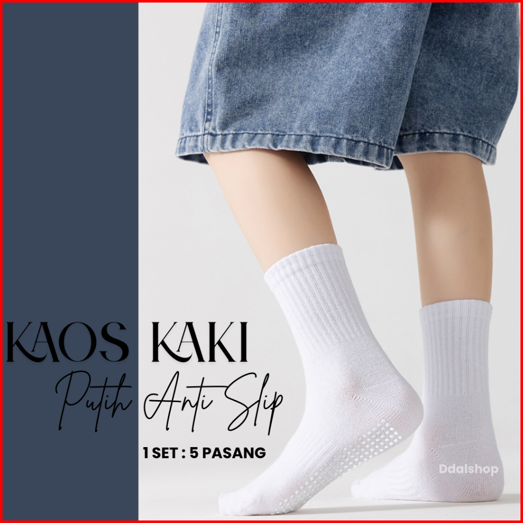 Kaos Kaki Sekolah Putih Polos Anti Slip Grip Kaus Tebal Halus Untuk Anak Sd Smp Sma Laki Perempuan
