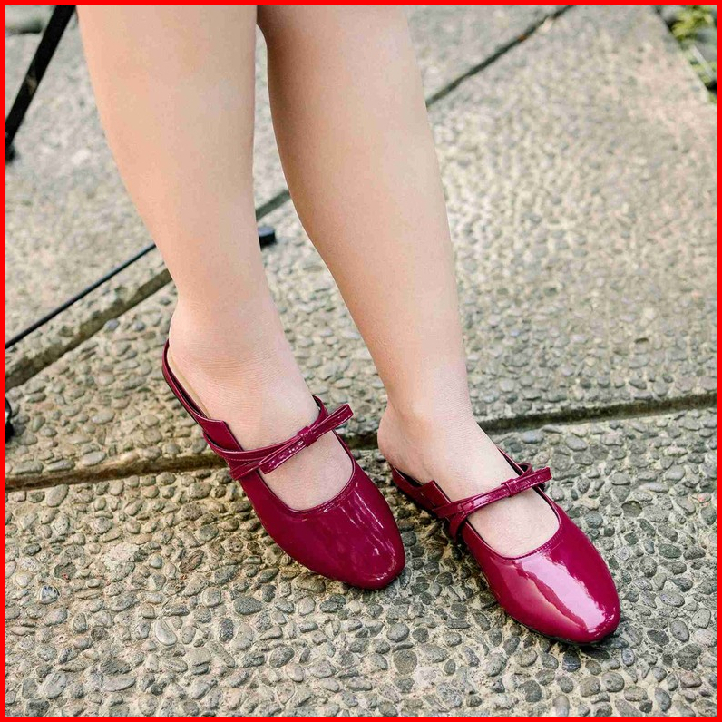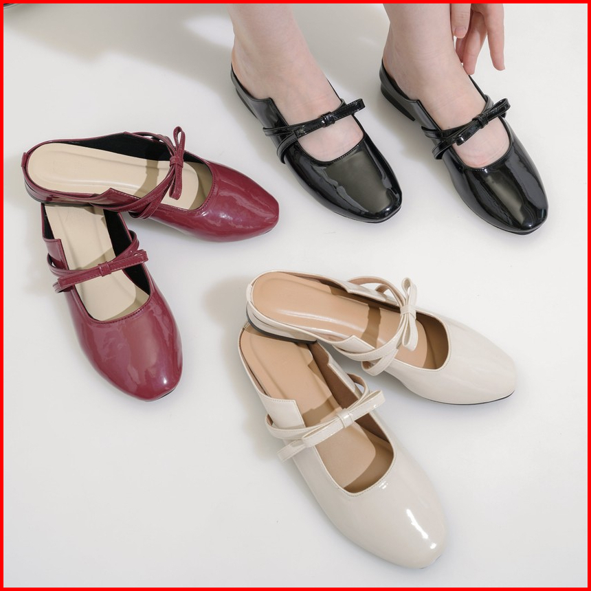 Hallyu Feet Ji-ah Mules Ivory Maroon Black Flats 2 Cm Wanita Flatshoe Sandal Nikah Casual
