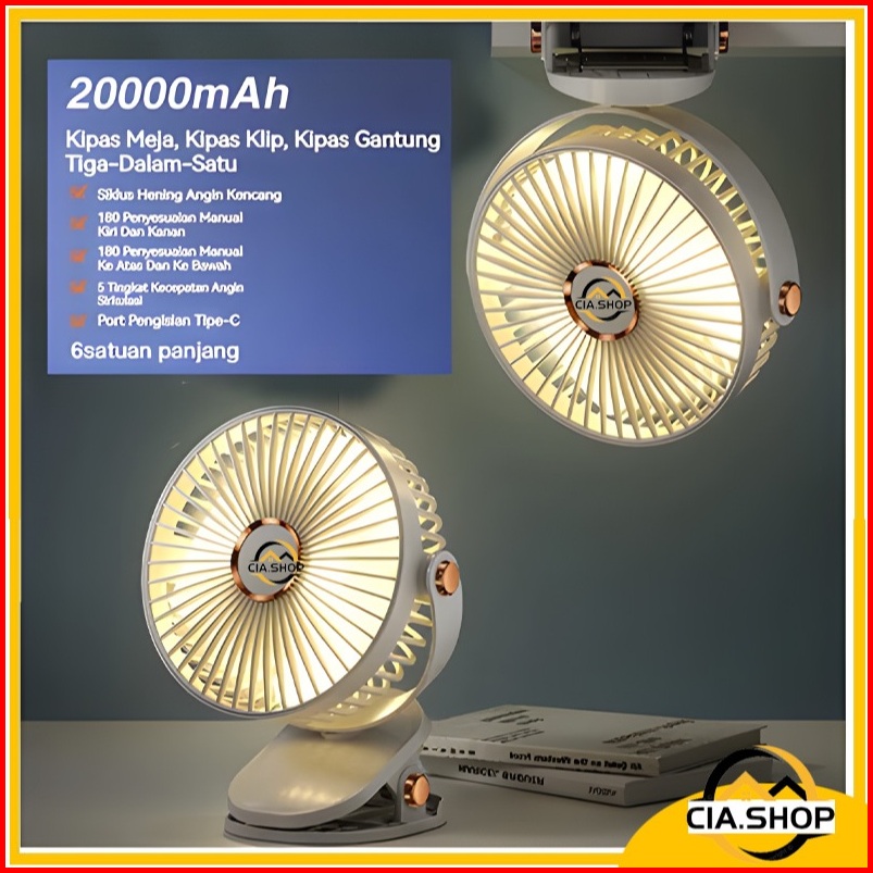 Kipas Angin 20000mah Kipas Angin Jepit Mini Usb Lampu Portabel 2 In 1 Fans Clip Desktop Usb Charger
