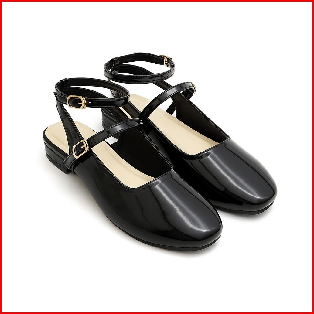 Hallyu Feet Ji-young Flat Shoes Black Mary Jane 2 Cm Wanita Heels Pesta Kencan