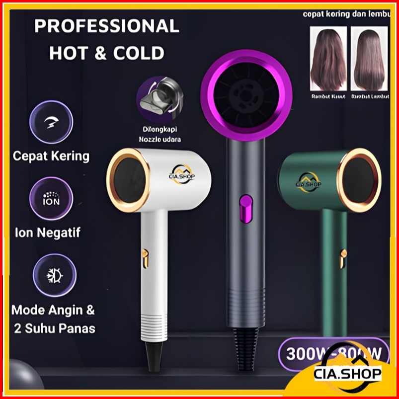 Hair Dryer Professional Hot Cold Pengering Rambut Panas Dingin 300w -800w 3 Tingkat Suhu Portable
