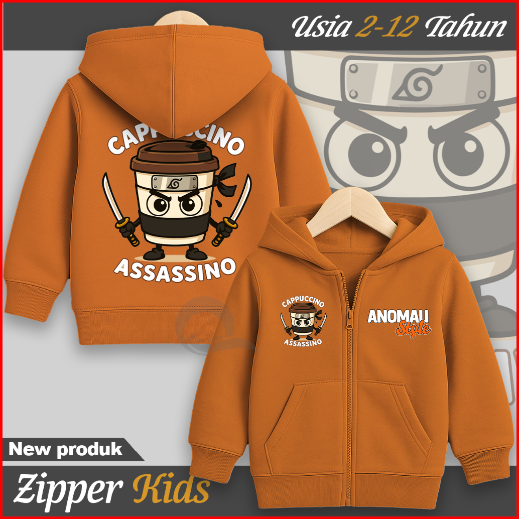 Jaket Zipper Anak Laki Laki Perempuan Karakter Cappucinno Assasino Usia 2-13 Tahun Jacket