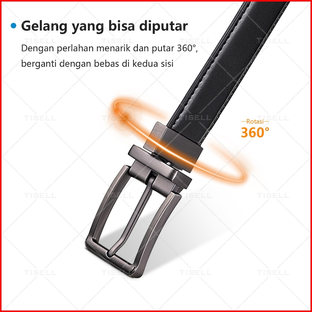 Tisell Ikat Pinggang Pria Bahan Kulit Pu Gesper Cowok Hitam Model Tusuk