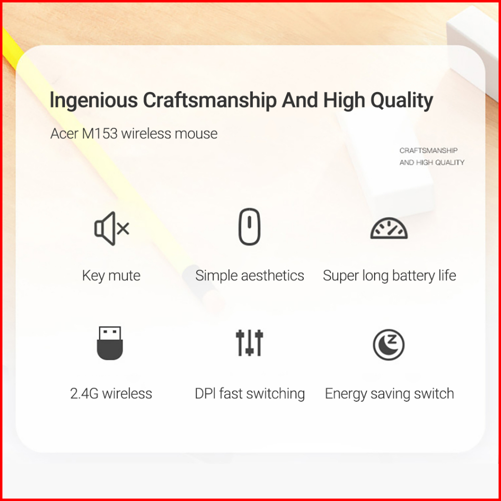 Acer Mouse Wireless M153 - 2.4g Mini Ringan Desain Senyap Untuk Kantor Bisnis Plug Play