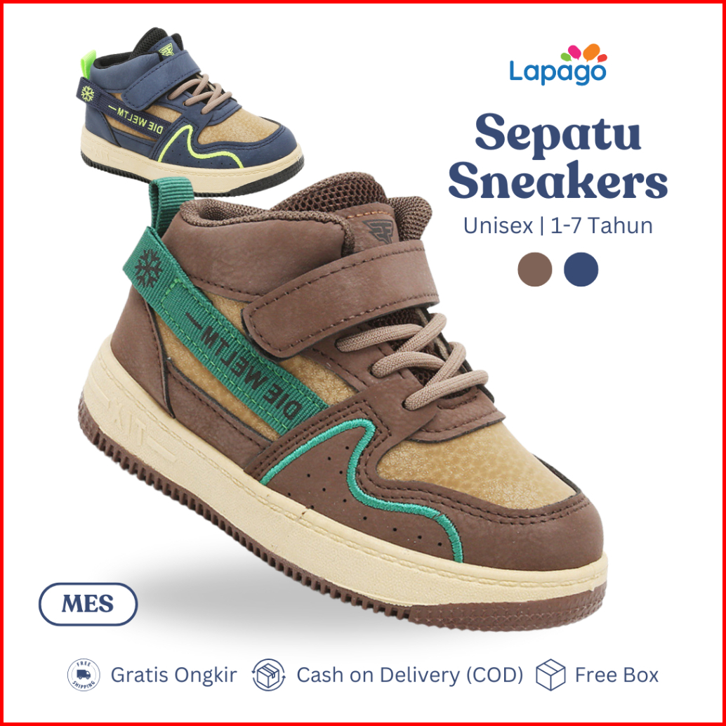 Lapago Free Box Sepatu Sneakers Anak Laki Laki Perempuan Casual Size 1 -6 Tahun Type Mes
