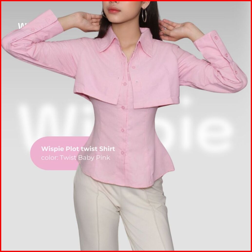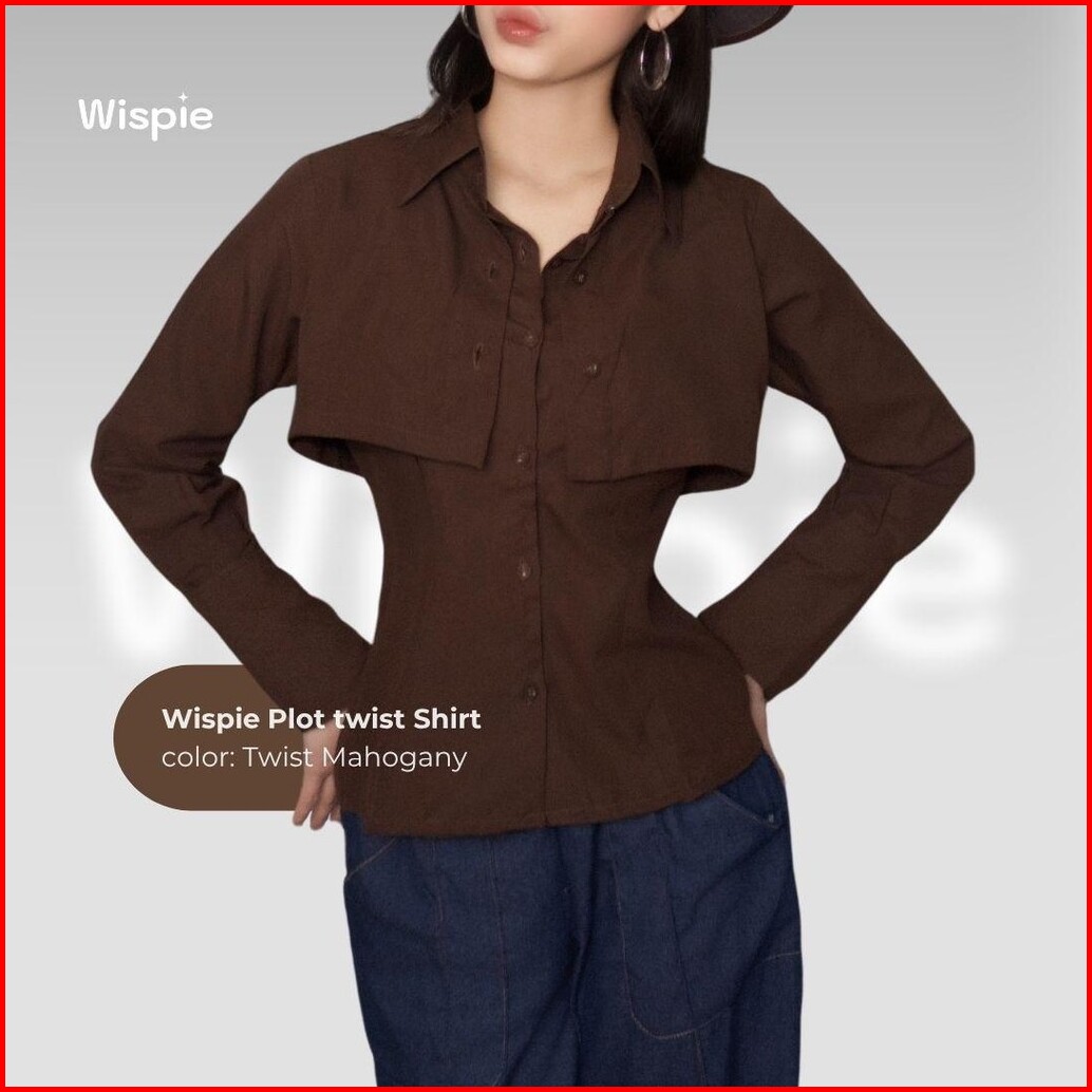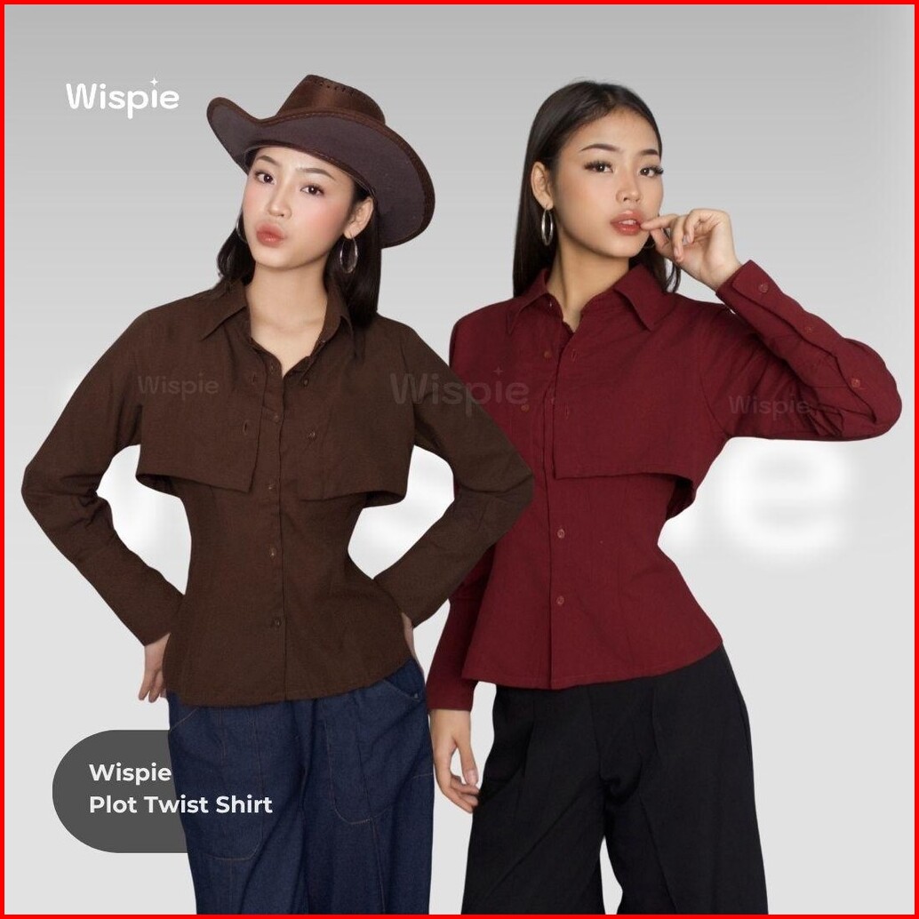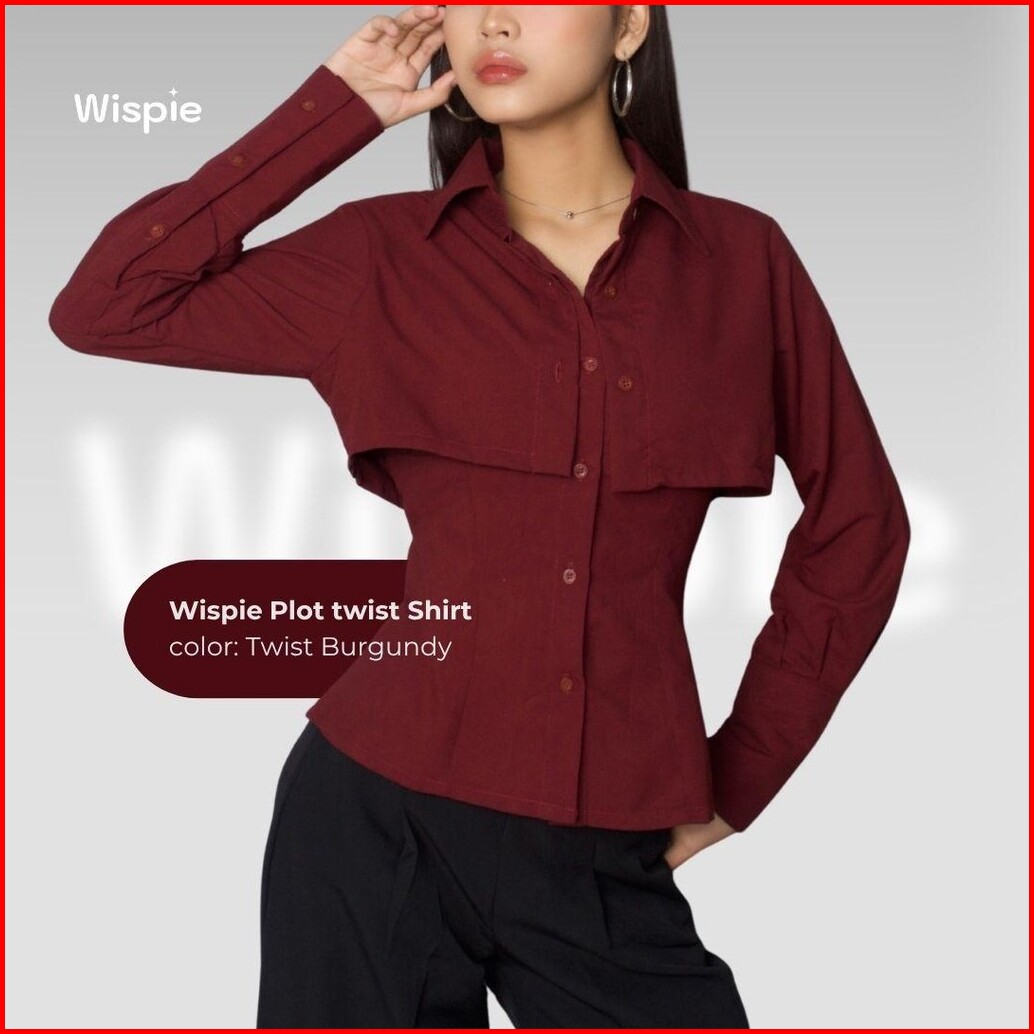 Wispie Plot Twist Shirt Kemeja Lengan Panjang Wanita Maroon Coklat Fitted Slim Blouse