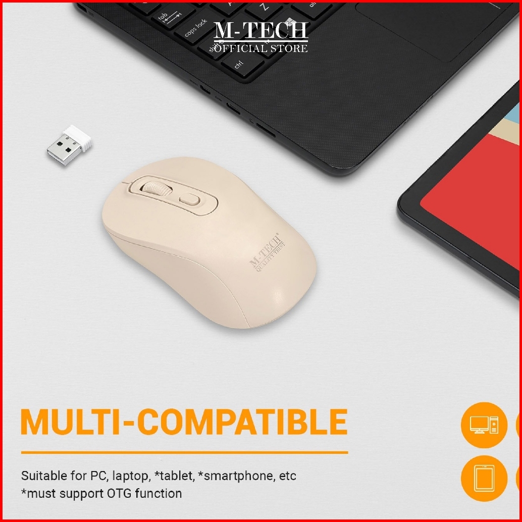 Mouse Wireless M-tech W- 70 Silent Click Free Battery Untuk Pc Laptop Smartphone Mtech - Garansi 1 Tahun