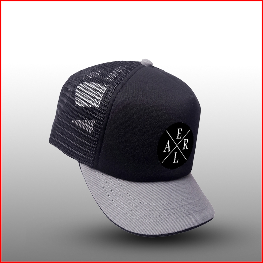 Aerial Original - Topi Trucker Caps Black Visor Pendek Topi Jaring Lidah Pendek 5 Cm