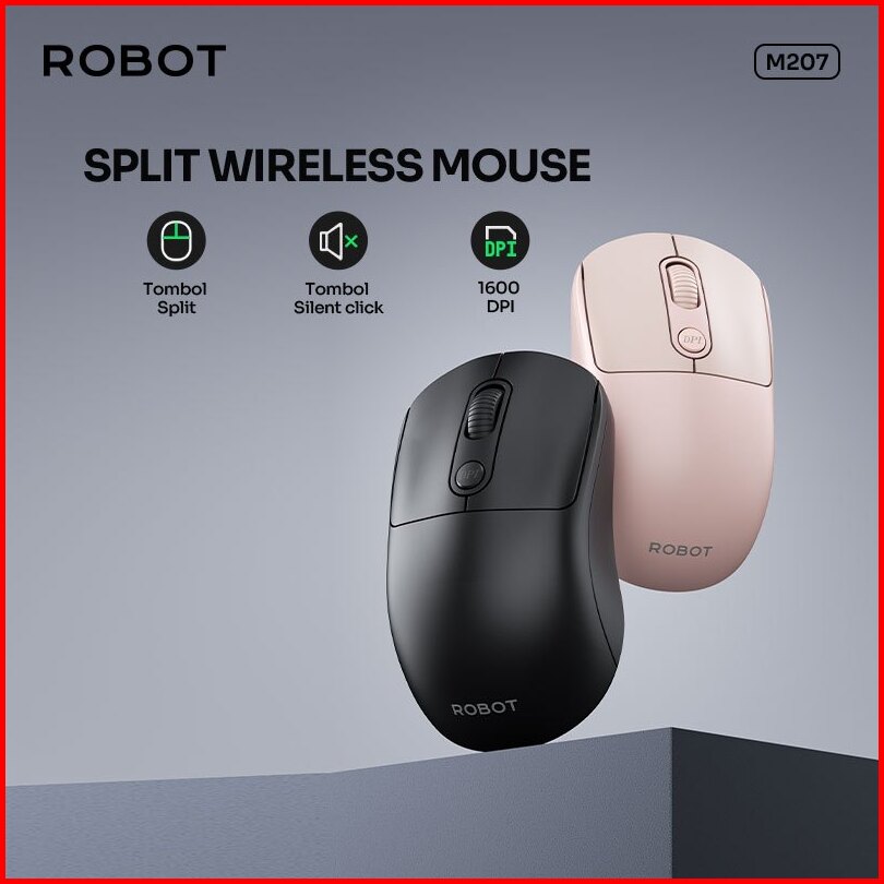 Robot Mouse Wireless Silent Click 2.4ghz Optical 1600dpi Split Wireless Mouse M207 Original - Garansi 1 Tahun