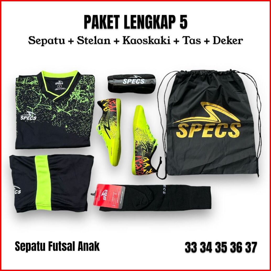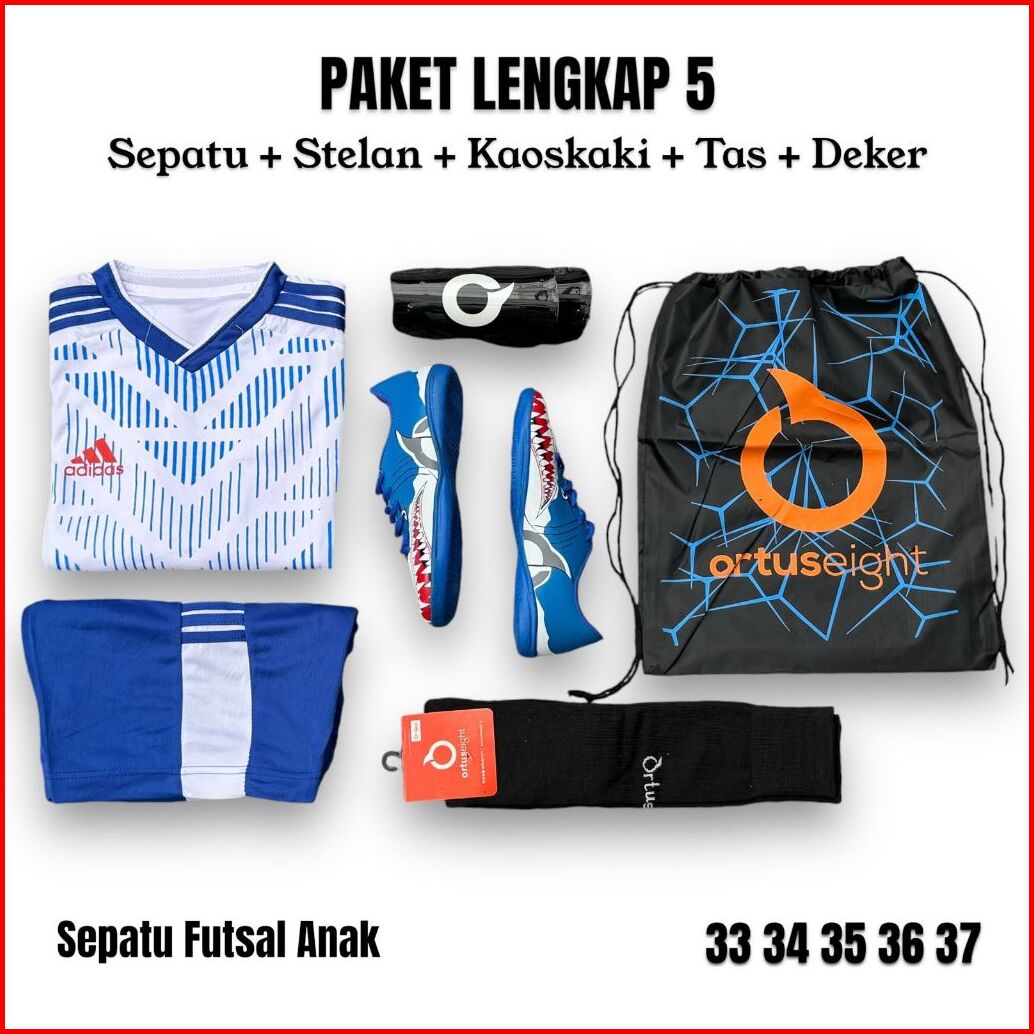 Paket Lengkap 5 Sepatu Futsal Anak Ortus Motif Hiu Shark Keren Sepatu Futsal Anak Laki Laki Full Set Size 33-37
