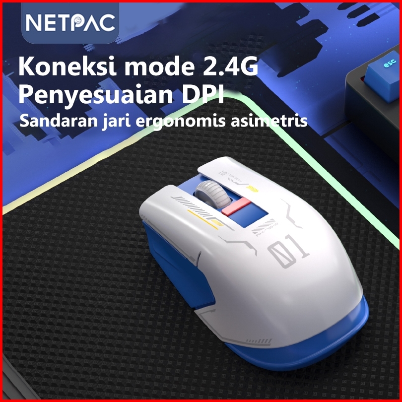 Netpac Mouse Wireless Gaming M1 Bluetooth 2.4g Type-c Usb 3 Model Led Baterai 1600dpi Rgb Ori