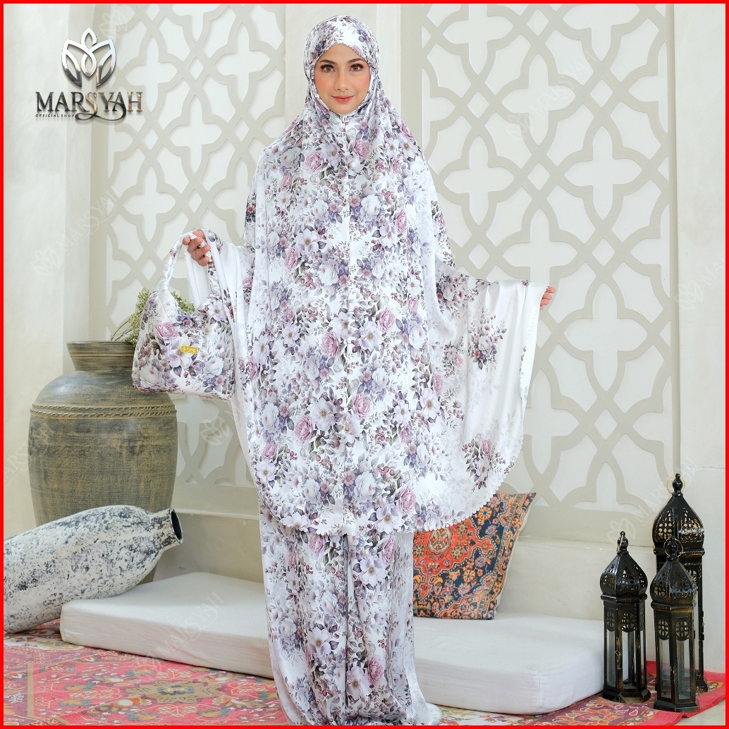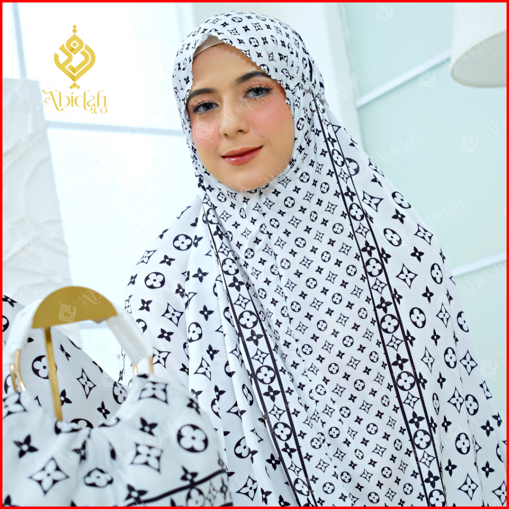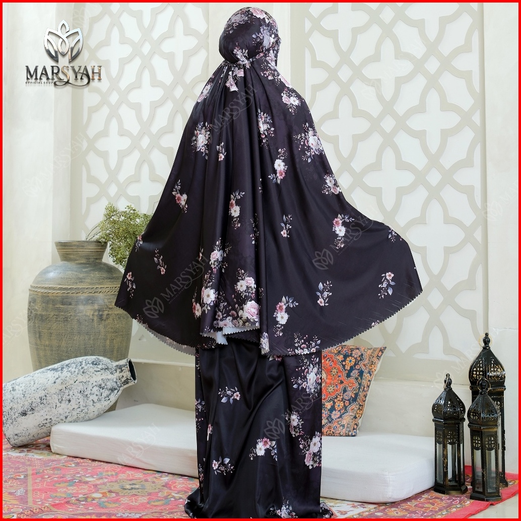 Marsyah - Mukena Armani Silk Adem Putih Hitam Elegan Lasercut Series