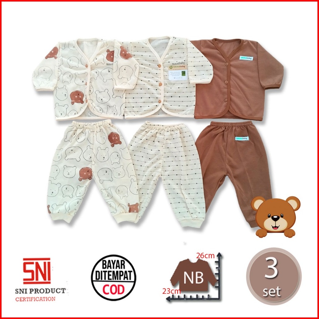6 Pcs 3 Set Baju Bayi Panjang Celana Bayi Setelan Newborn Baru Lahir Atasan Kado Murah Lucu Cowok Cewek Perempuan Laki 0