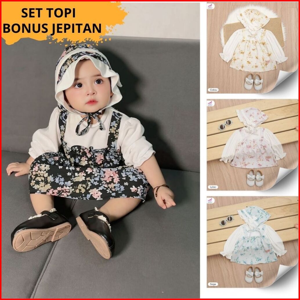 Baju Bayi Perempuan Set Topi Lucu Umur 0 Bulan - 20 Bulan One Set Bayi Newborn Zalira Kids Original Ciara Dres Setelan L