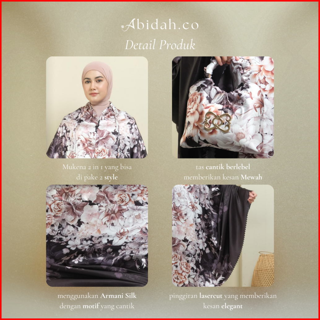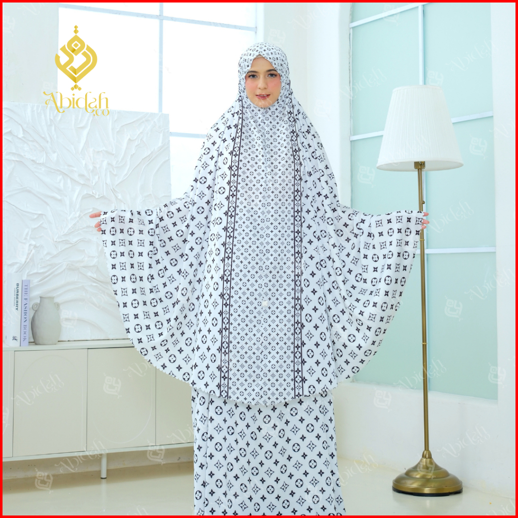 Abidah.co - Mukena Dewasa Super Mewah Armanie Silk Exlusive Premium Black And White Series