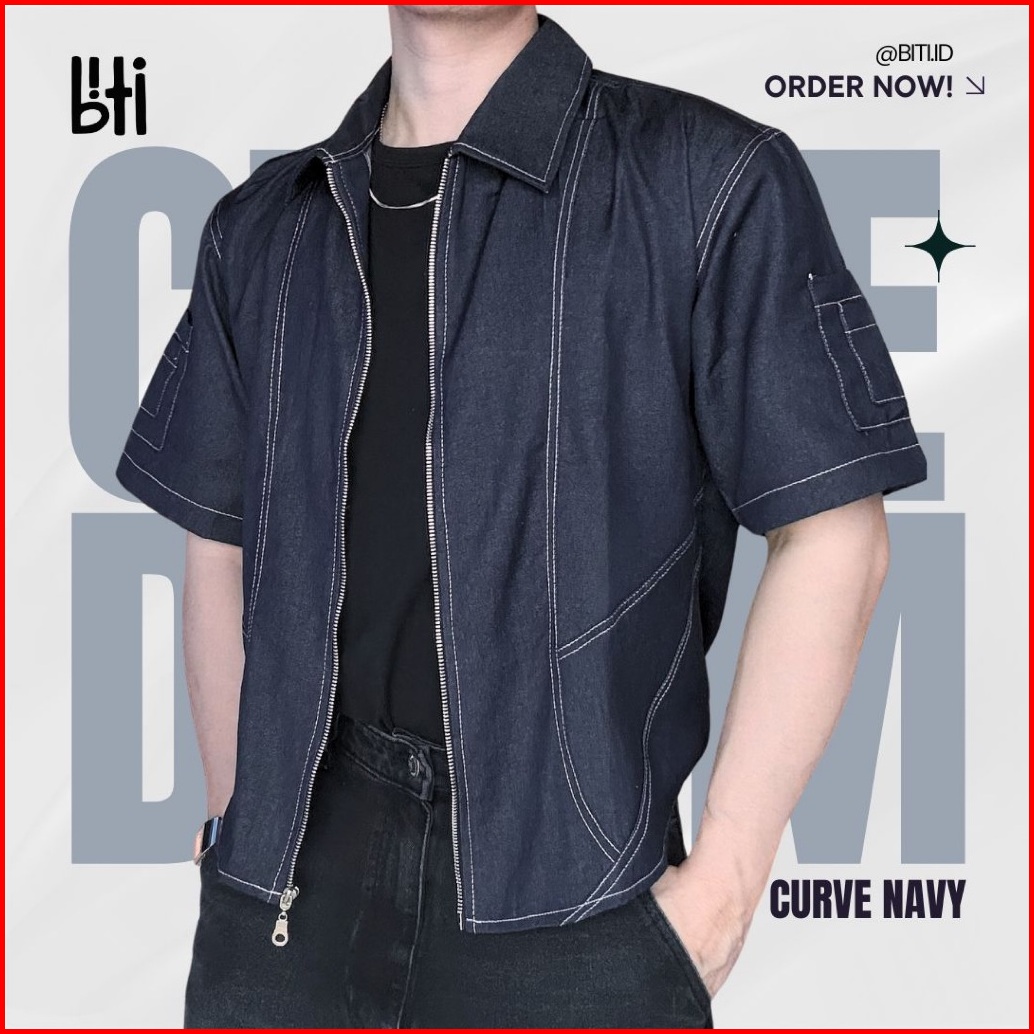 Biti Curve Zip Shirt Kemeja Denim Lengan Pendek Pria Zipper
