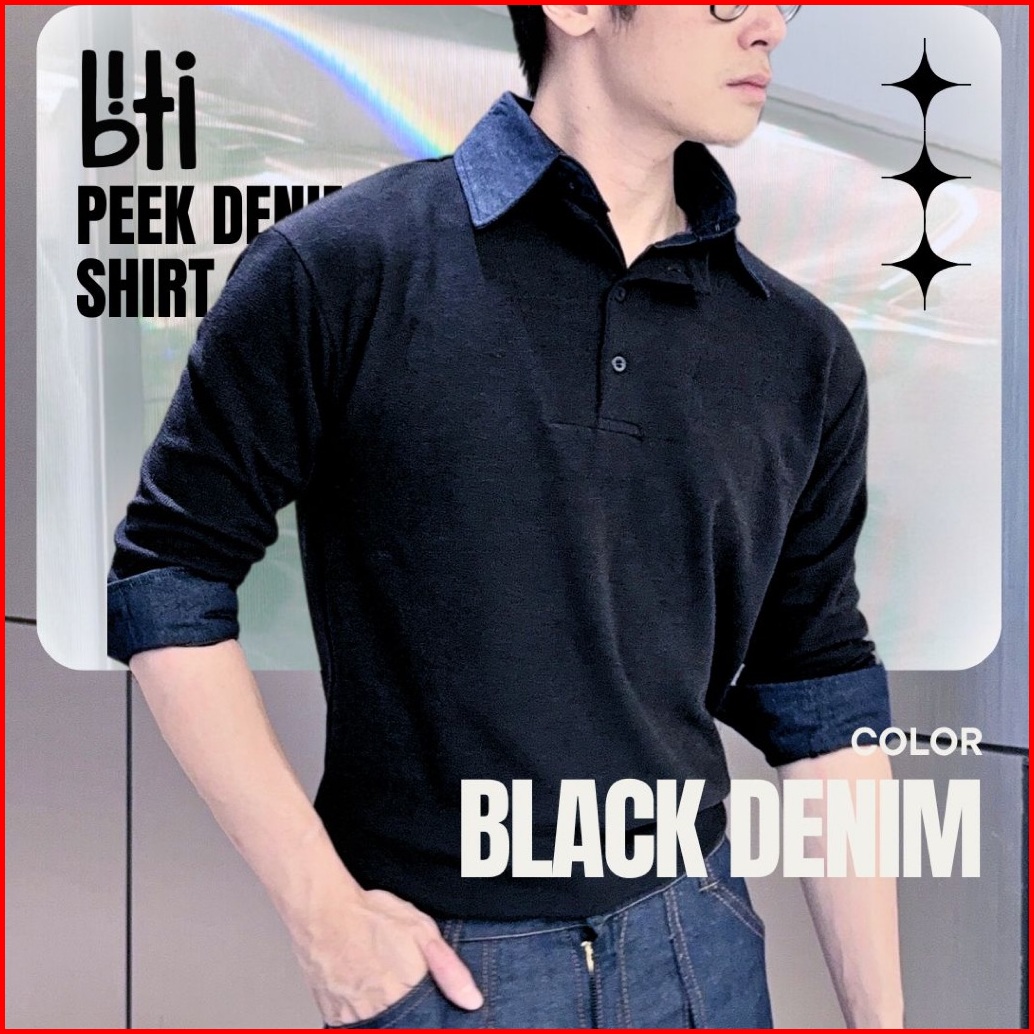 Biti Peek Denim Shirt Kemeja Kombinasi Denim Rib Knit Lengan Panjang