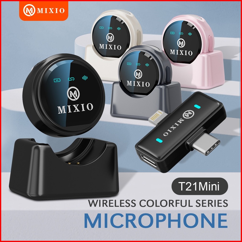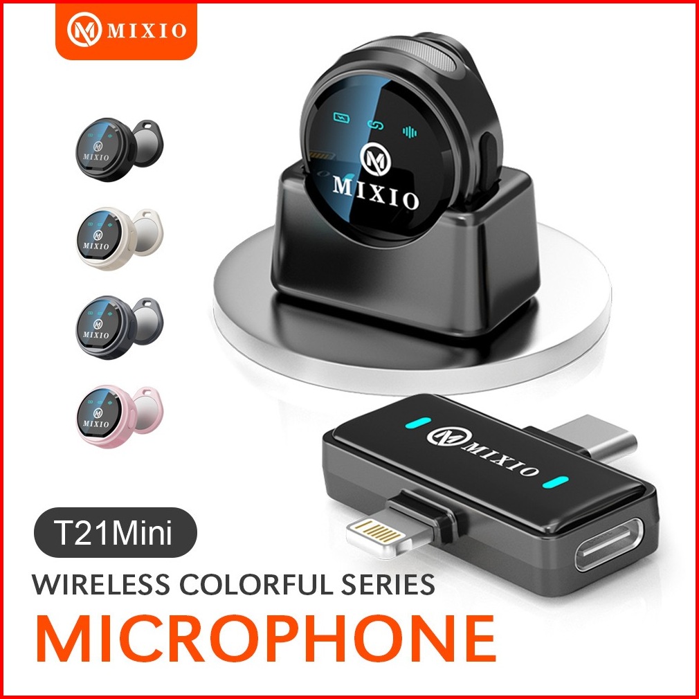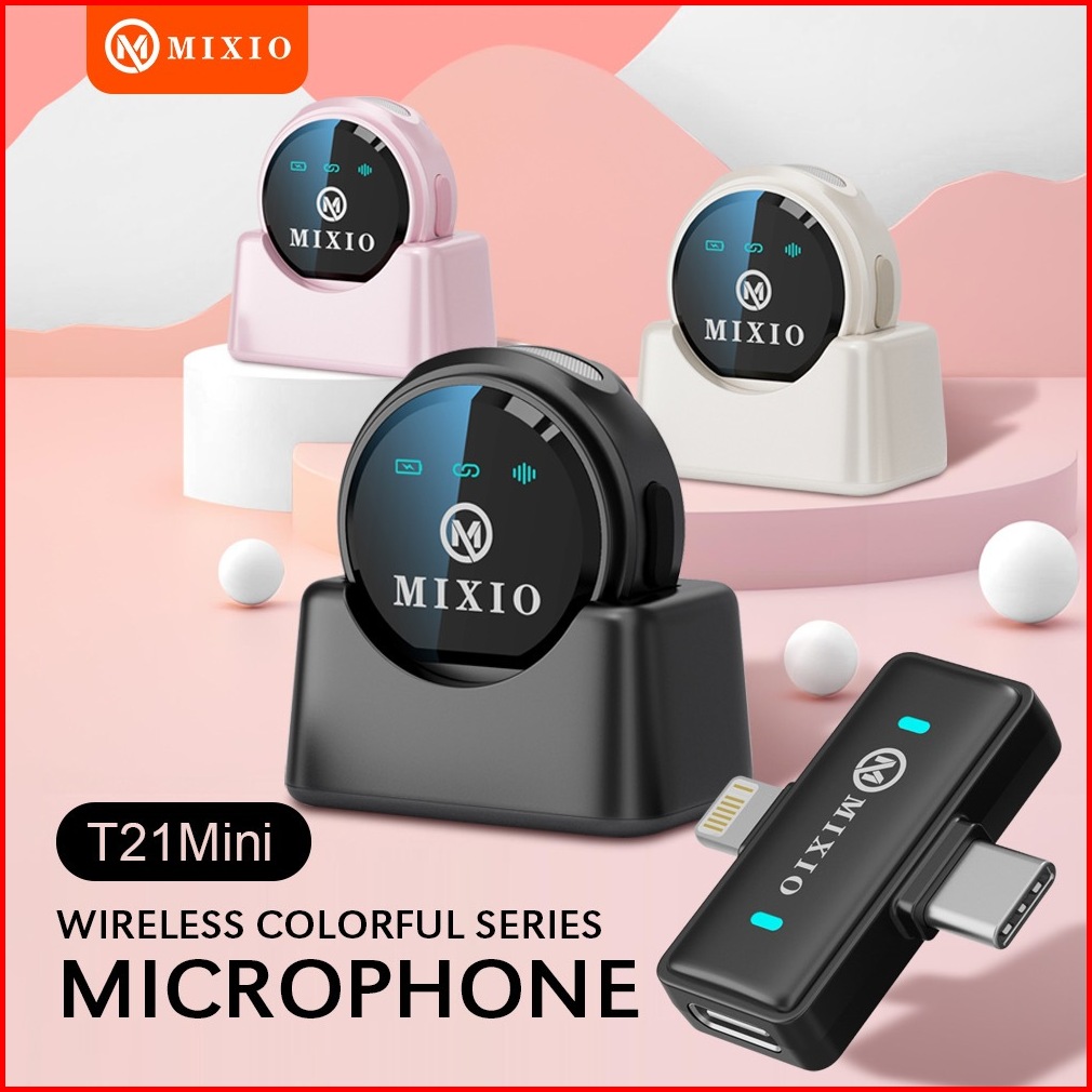 Mixio T21 Magnetic Mic Wireless 2-in-1 Super Mini Clip On Microphone Mikrofon Lavalier Hp Plug Play With Charging Dock