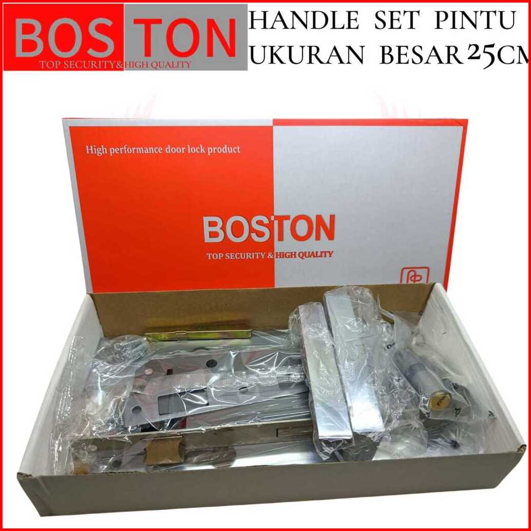 Kunci Pintu Besar 25 Cm Boston Handle Pintu 1 Set Kunci Set Komplit Ukuran Besar Gagang Kotak Chrome