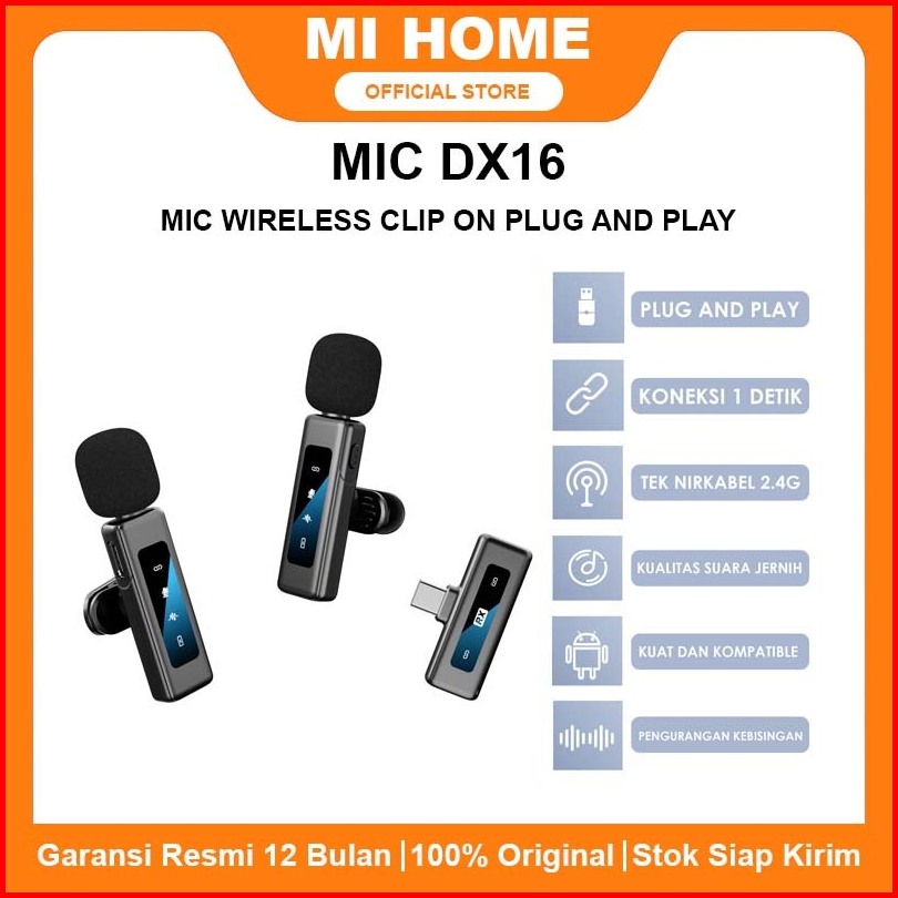 Mihome Mikrofon Wirelesss Mini Clip On Portable Dual Mic Dx16 Mic Wireless Hp Android Type C And Ios Plug And Play 2 In