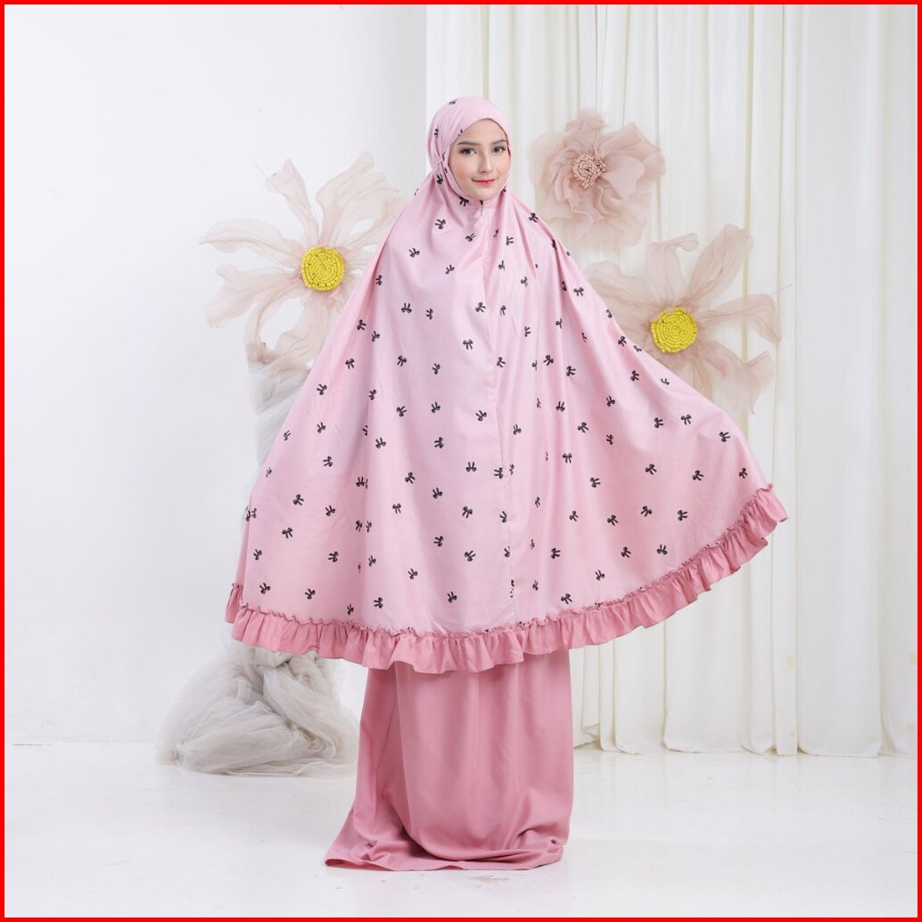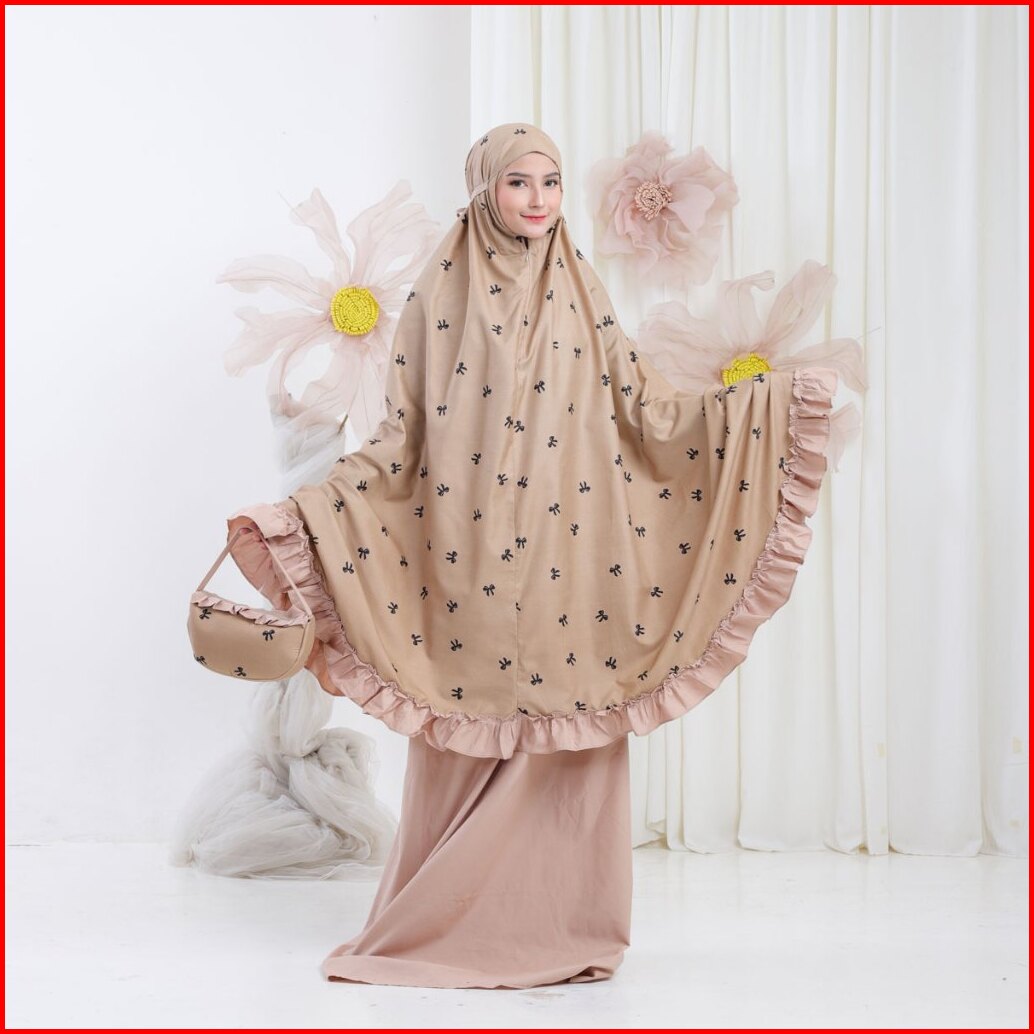 Mukena Dewasa Resleting Dagu 2in1 Remple Katun Premium Motif Kombinasi