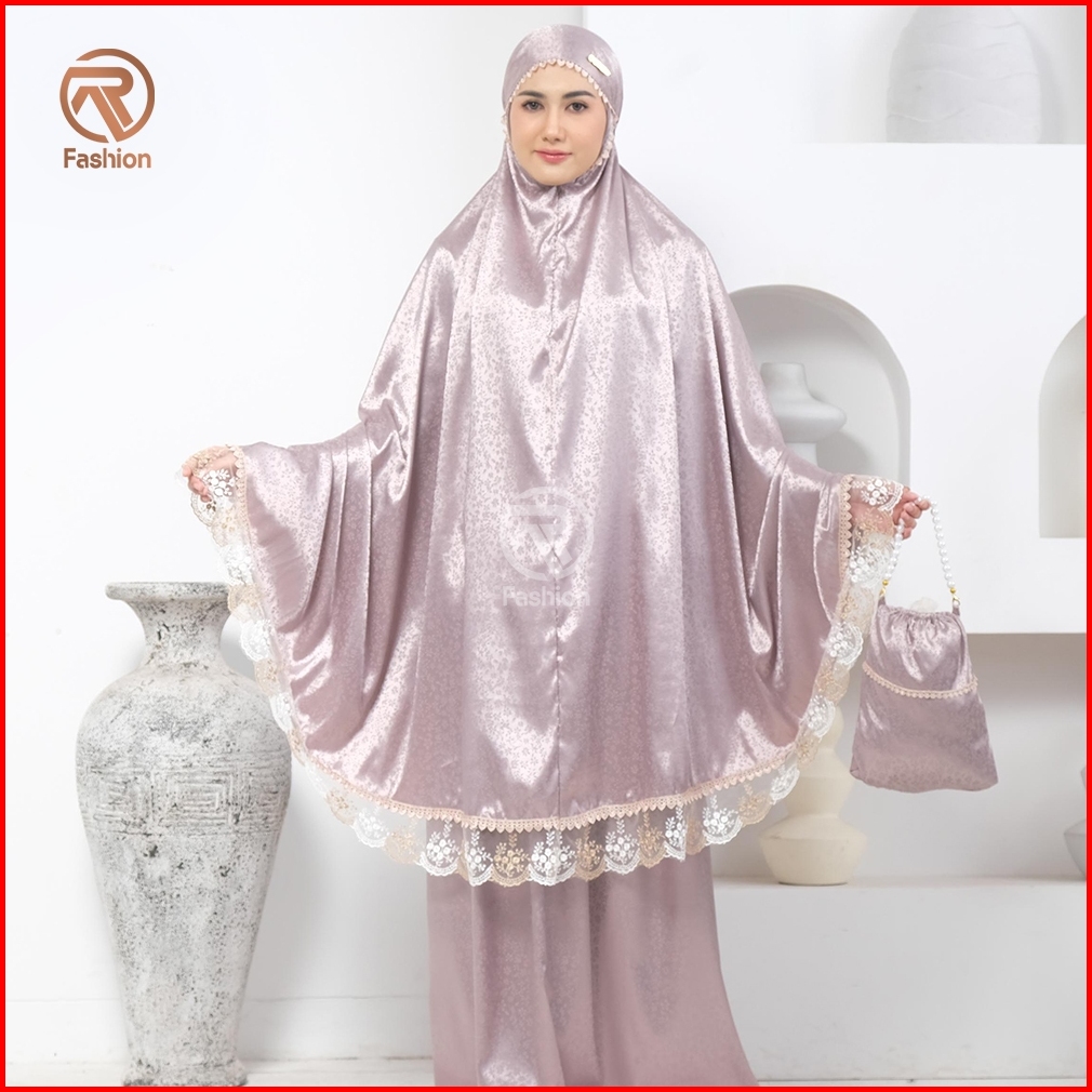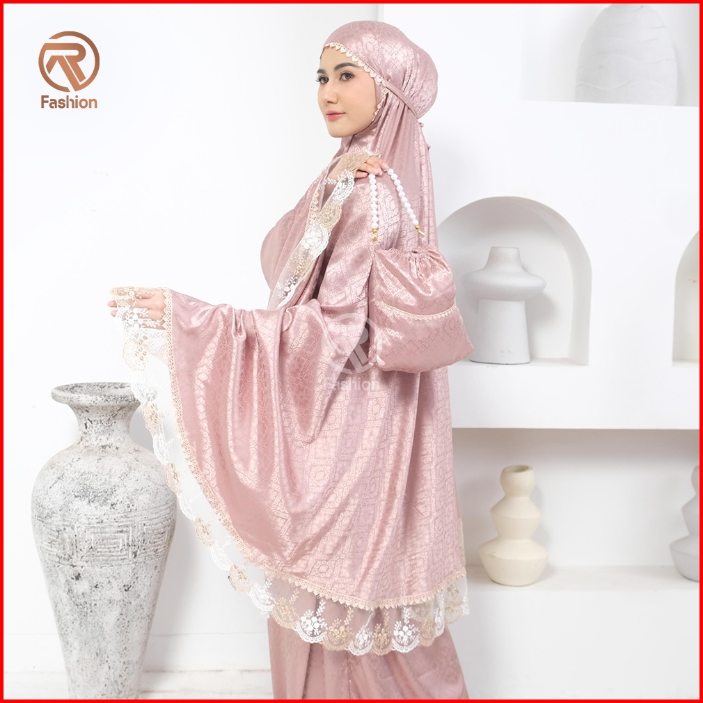 Ra Fashion - Mukena Allena 2in1 Series Dewasa Sutra Silk Jacquard Renda Tile Mewah Jumbo Travel