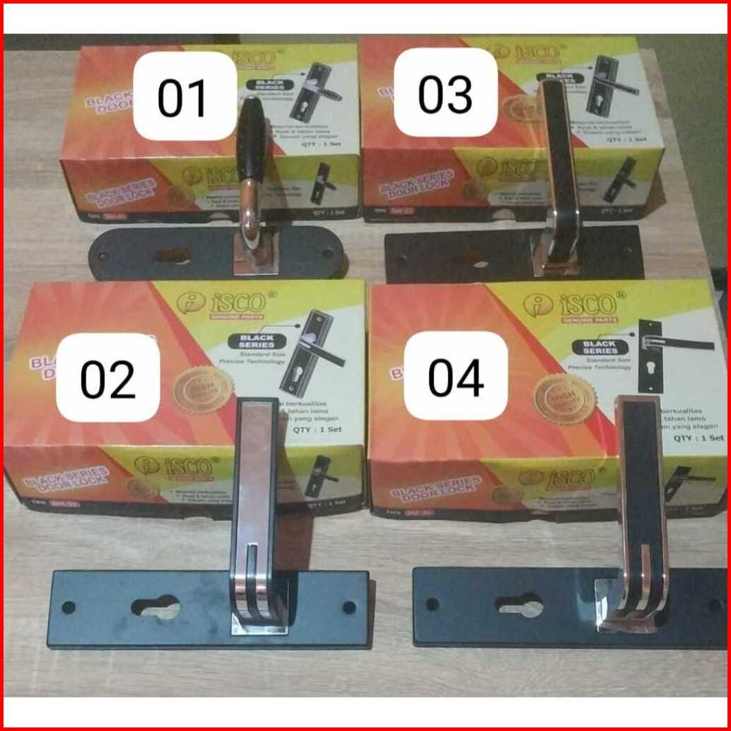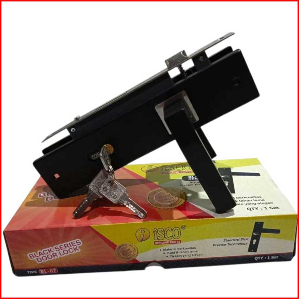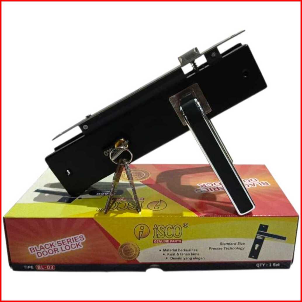 Kunci Pintu Besar Isco 25cm 3 Anak Kunci Handle Selot Hitam Minimalis Kunci Rumah Gagang Kotak