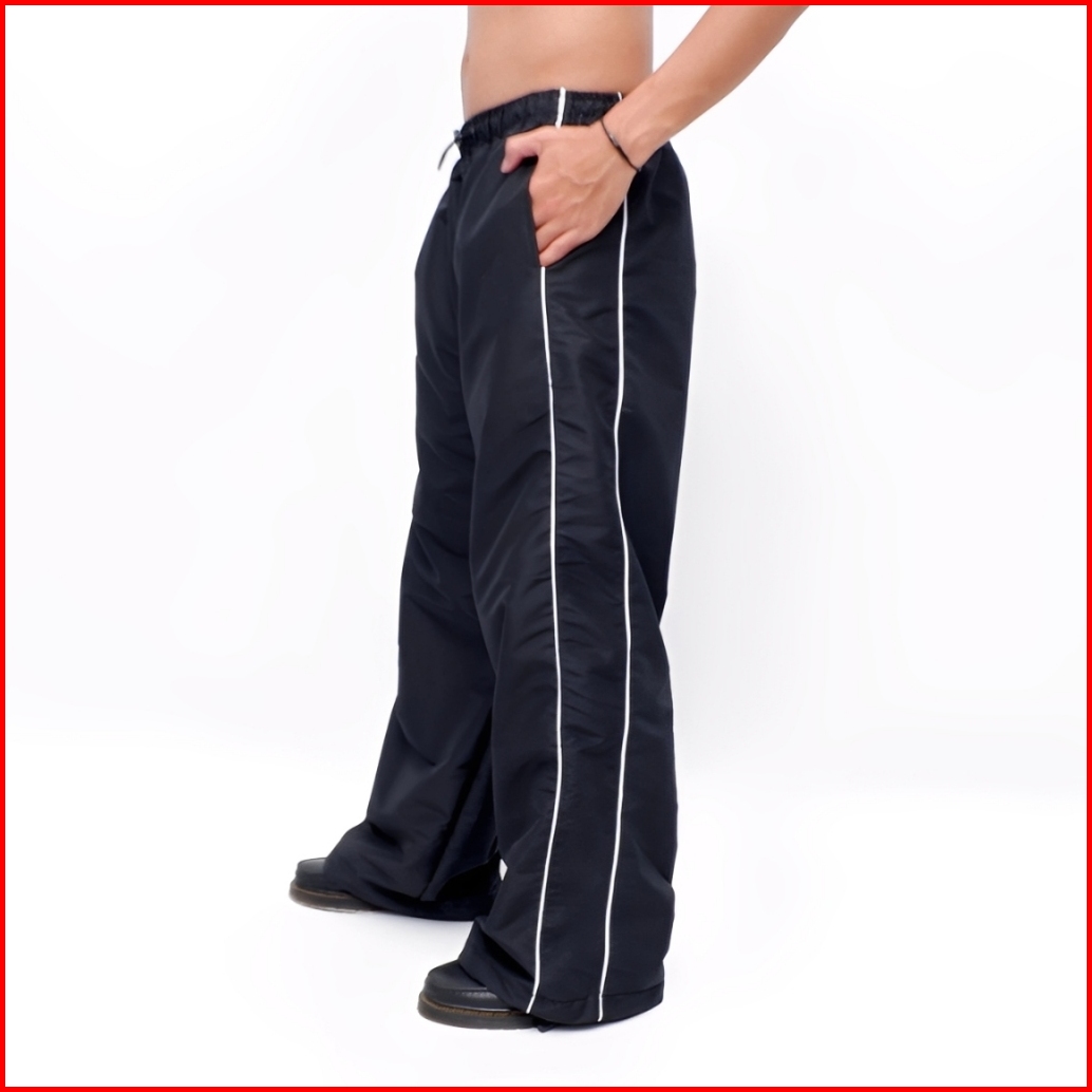Celana Track Pants Cewek Cowok Panjang Two Line Celana Parasut Panjang Hitam Celana Parasut Strip Baggy Pants Parasut