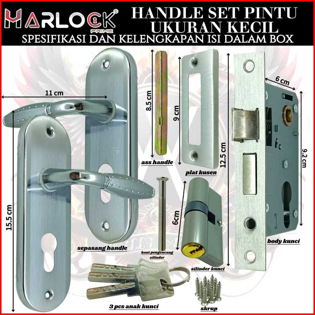 Kunci Pintu Kecil 15.5 Cm Handle Pintu 1 Set Ukuran Kecil Gagang Bulat Chrome Harlock
