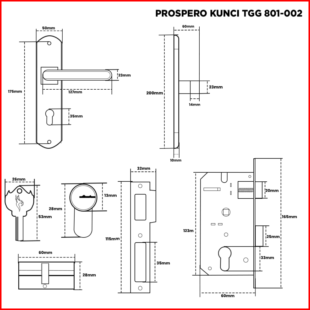 Prospero Handle Kunci Pintu Rumah Minimalis Fullset Tanggung 20cm Komp Keys System Gagang Pintu 2035