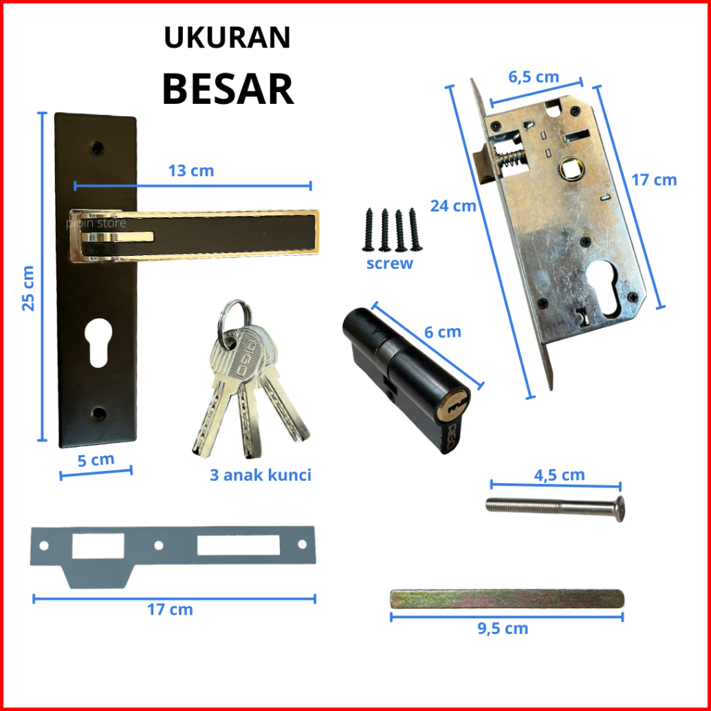 Kunci Pintu Hitam Black List Chrome Handle Komplit Ukuran Tanggung 20 Cm Besar 25 Cm Hendel Gagang Pintu Minimalis 1 Set