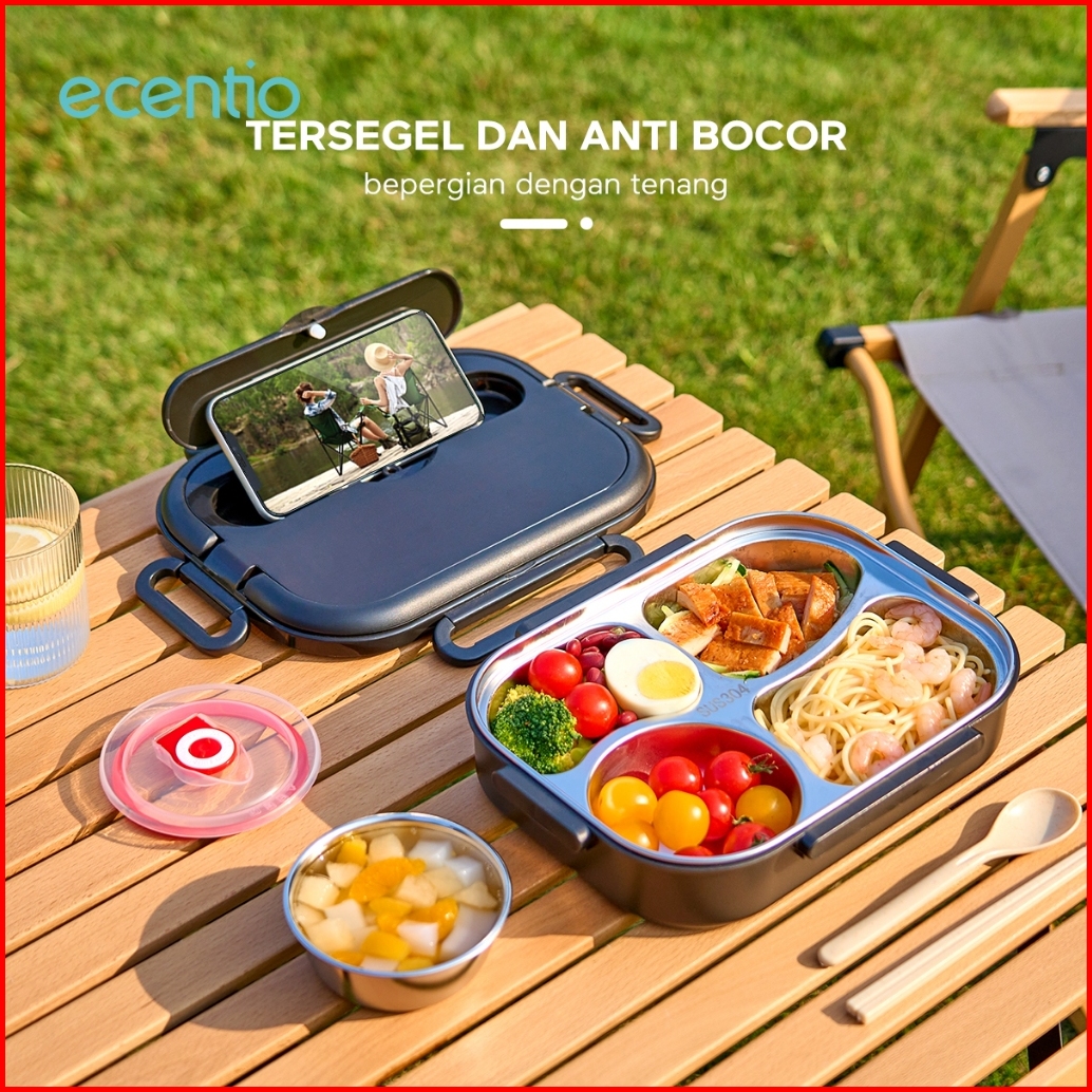 Buy 1 Get 3ecentio Lunch Box 1000ml Stainless 304 Sekat 4 Dan Anti Tumpah Free Sendok Sumpit