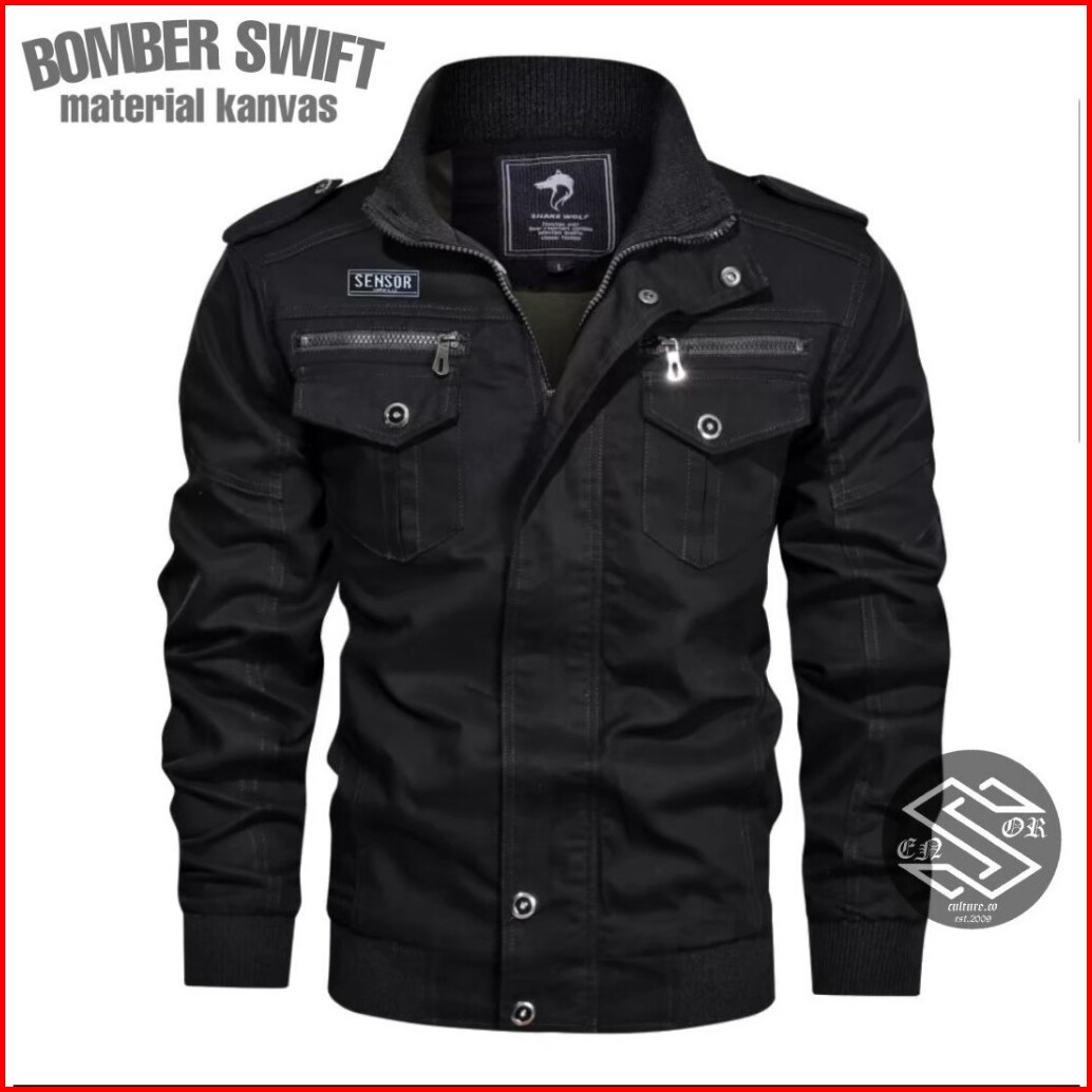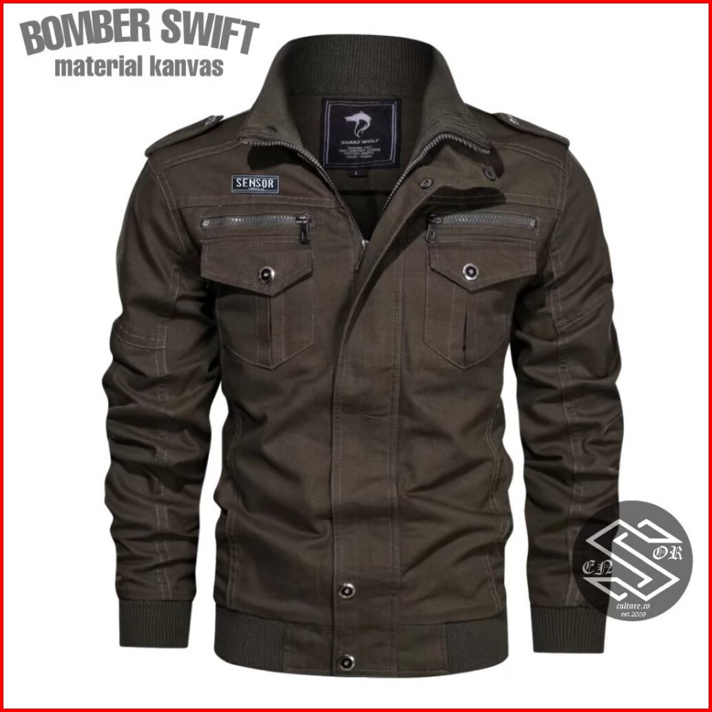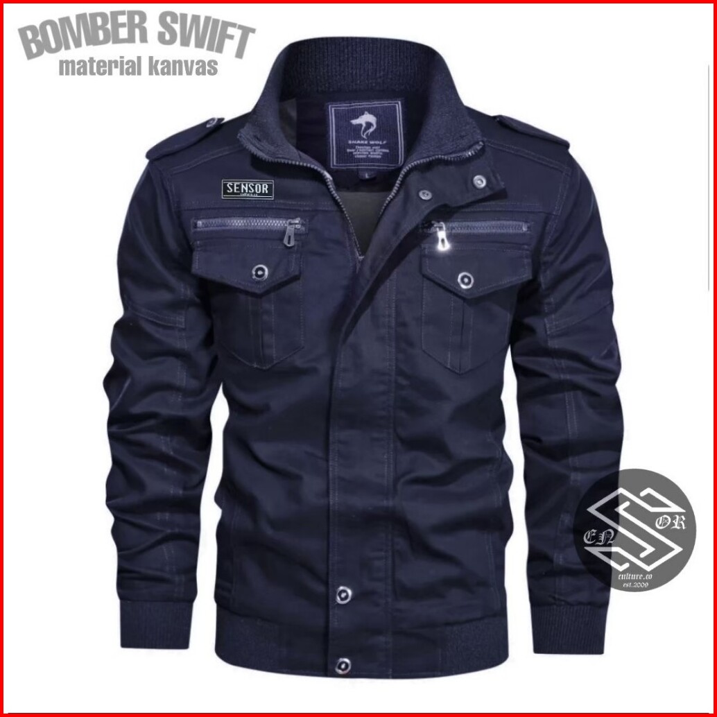 Jaket Bomber Pria Swiff Sensor Jaket Bomber Kanvas Pria
