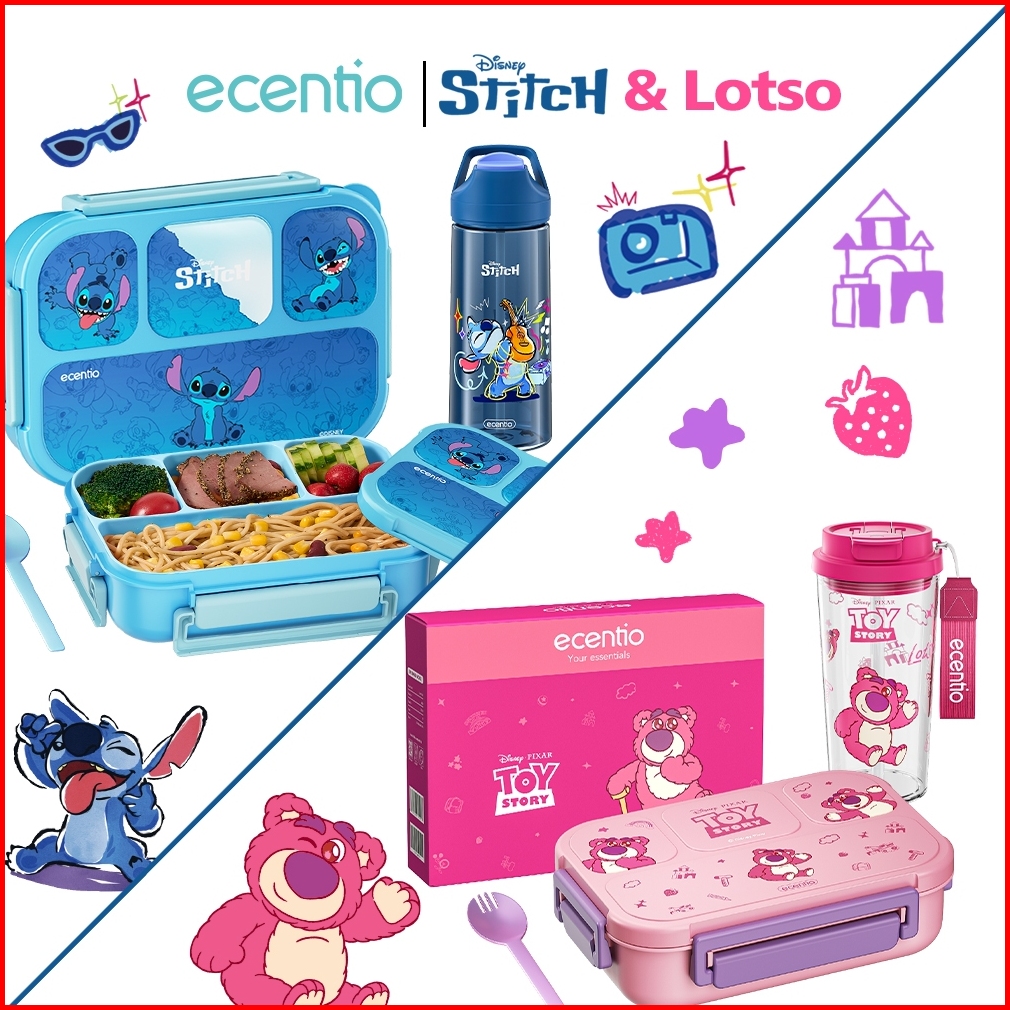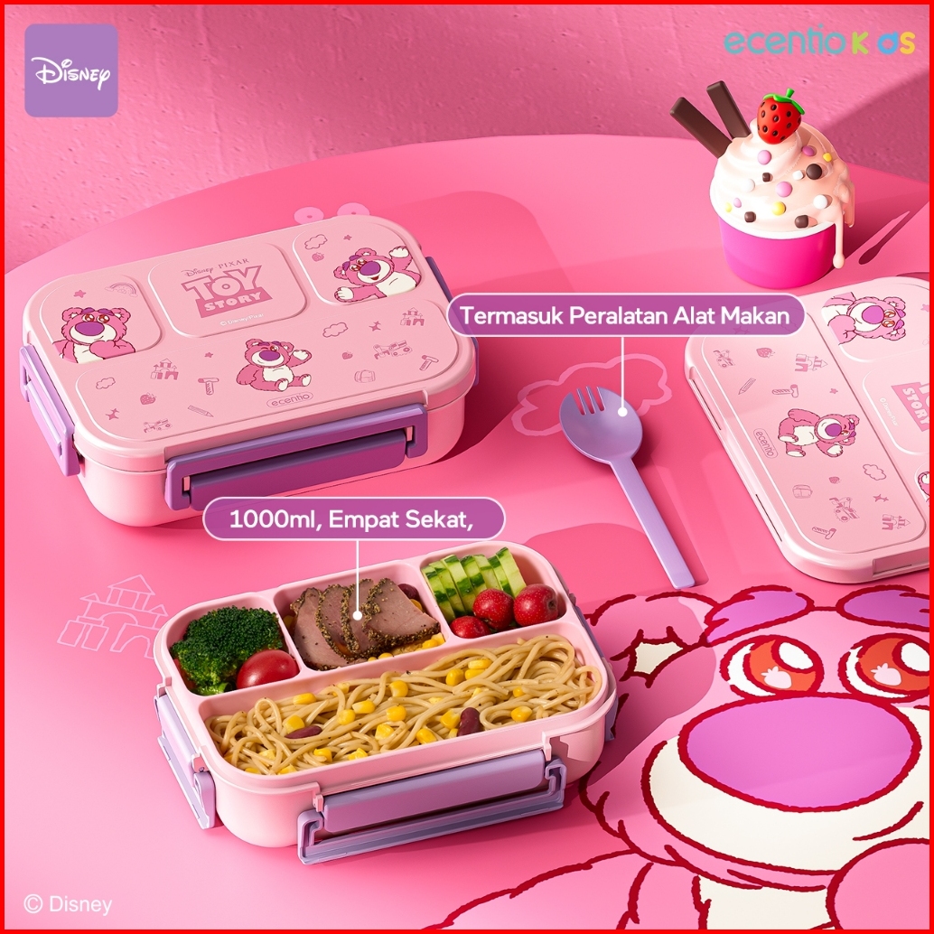 Lotso Stitch Ecentio Disney Original Kotak Makan Anak Lucu Aesthetic 4 Sekat Kotak Bekal Anti Tumpah 1000ml Tempat Makan