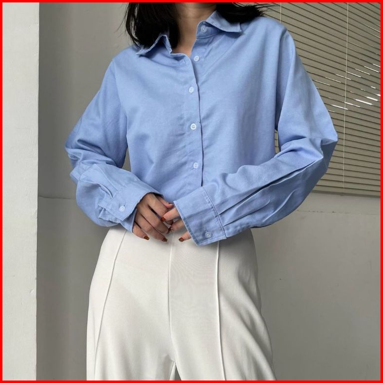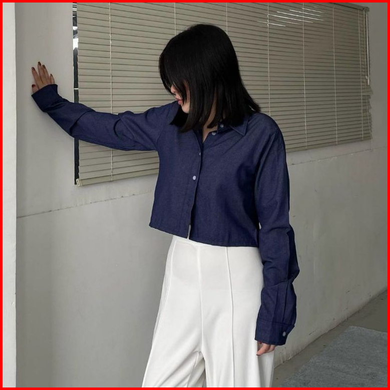 Aloha Eun Hye Korean Crop Denim Shirt 2017 Atasan Crop Wanita Denim Kemeja Crop Viral Denim 2017